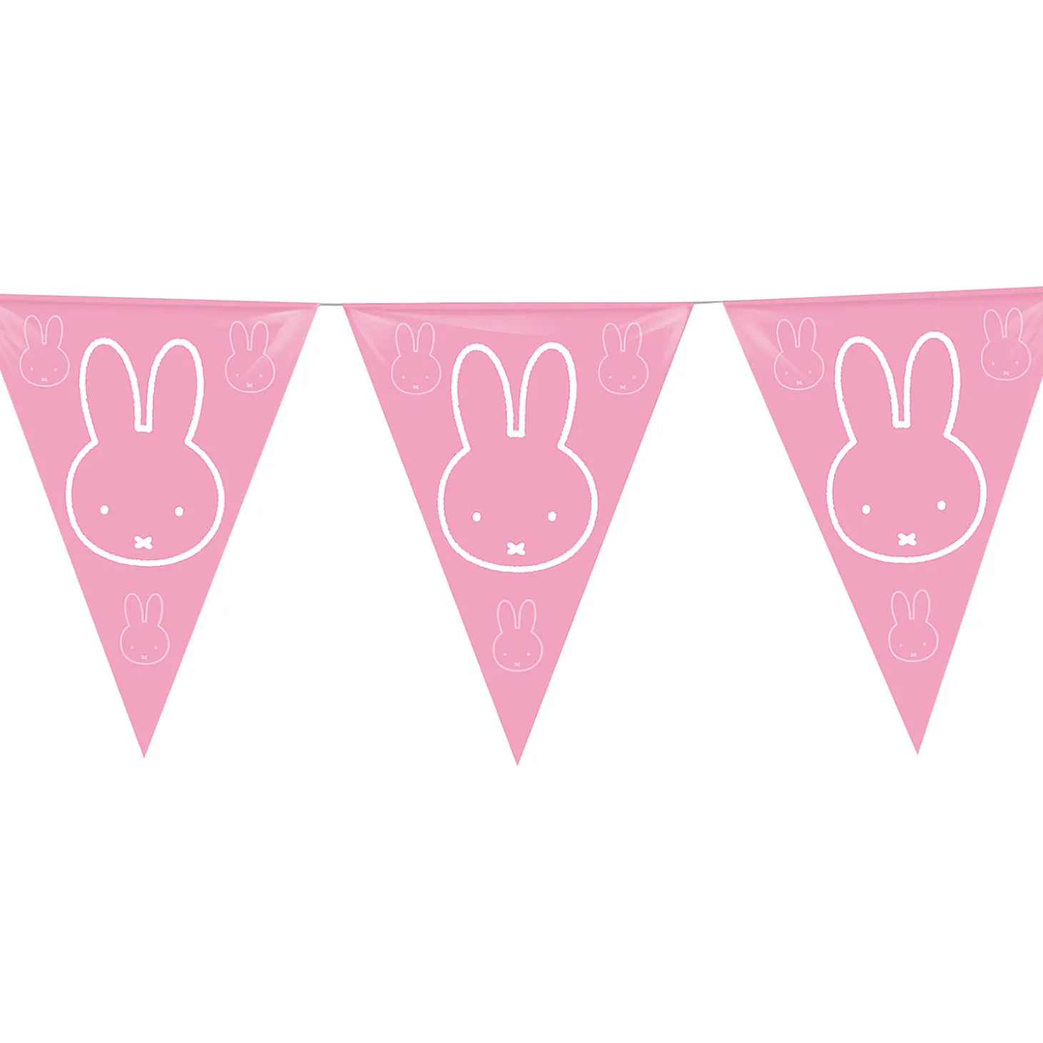 Hoera, een meisje! Wil je graag het kraamfeest goed in thema aankleden? Daar kan je deze roze vlaggenlijn van Nijntje goed bij gebruiken. Op de vlaggen staat het gezicht van Nijntje en is 10 meter lang.