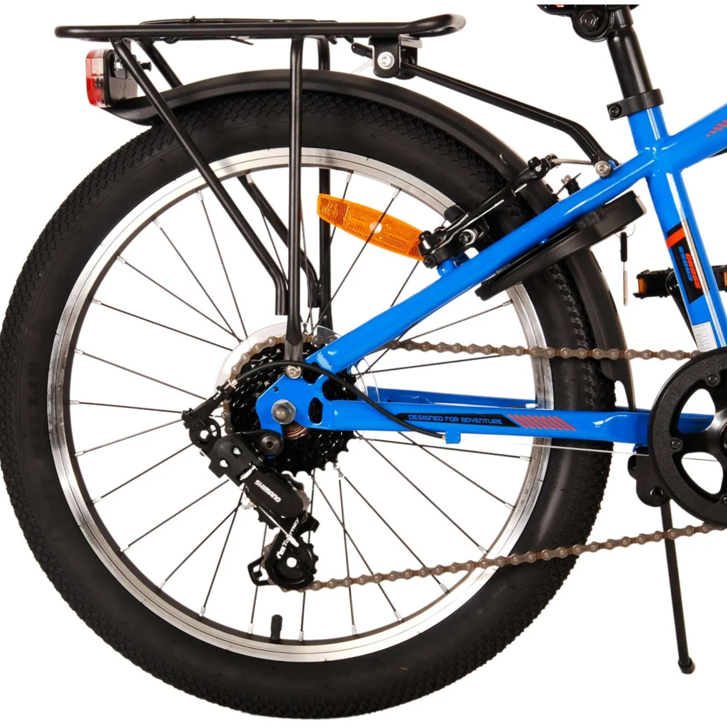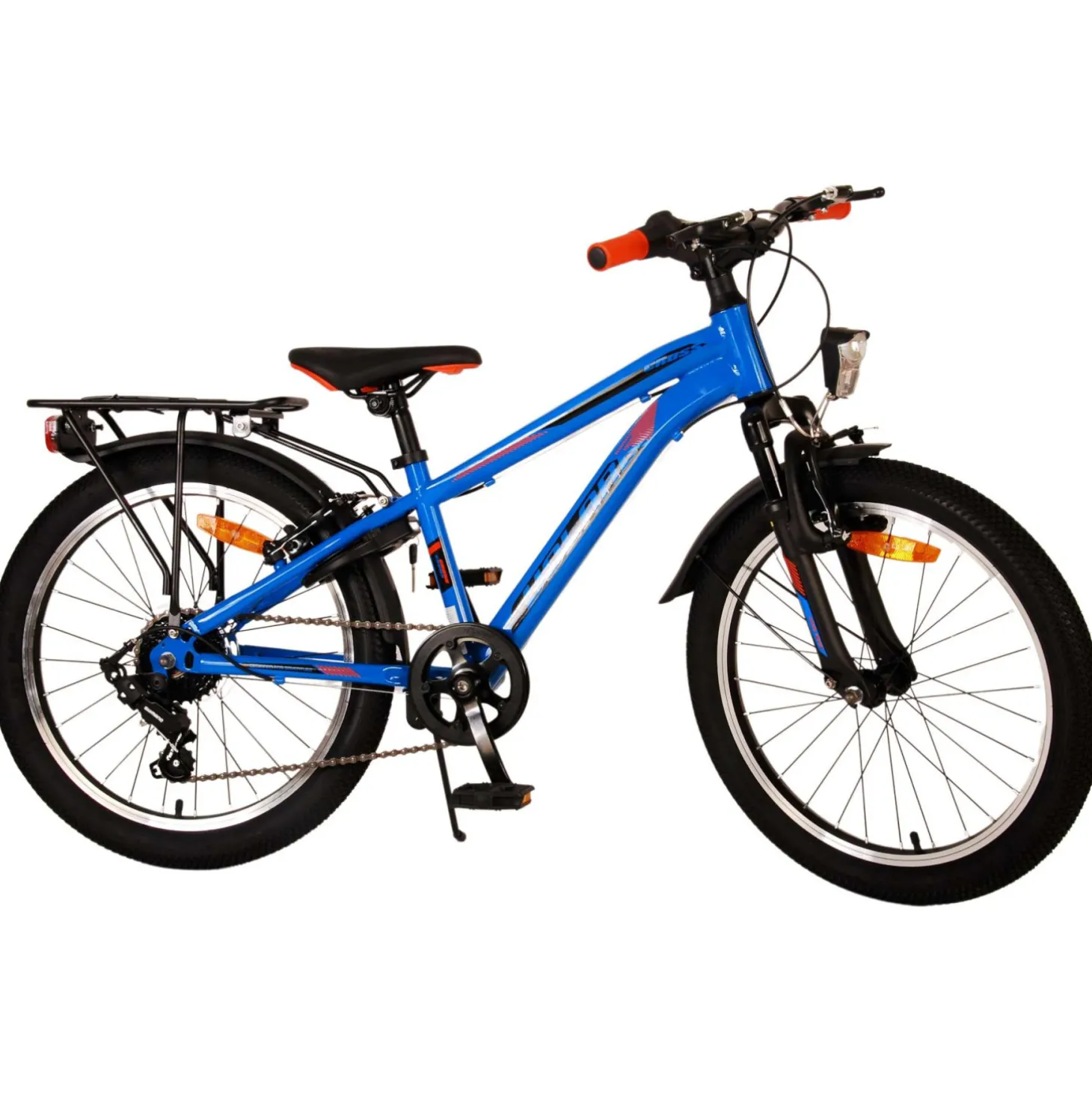 Veiligheid staat voorop! Daarom heeft deze gave fiets geen terugtraprem maar twee handremmen, 6 versnellingen, reflectoren in de wielen en verlichting op batterij voor en achter. Ook aan het comfort is gedacht. De mooie donkerblauwe Volare fiets heeft een handige achterdrager om moeiteloos al je spullen mee te nemen, een comfortabel zacht zadel, een standaard zodat je fiets altijd netjes blijft staan en een stevig slot. Om zo lang mogelijk van de fiets te kunnen genieten heeft deze een extra lange zadelpen waardoor de fiets nóg langer met het kind meegroeit. Let op, het stuur is niet in hoogte verstelbaar!