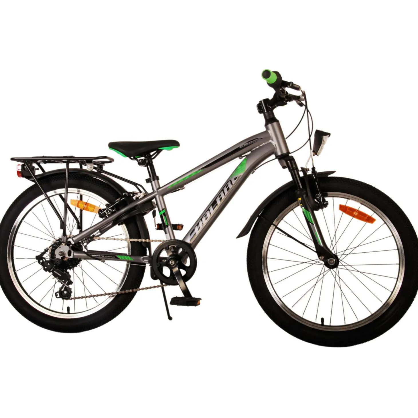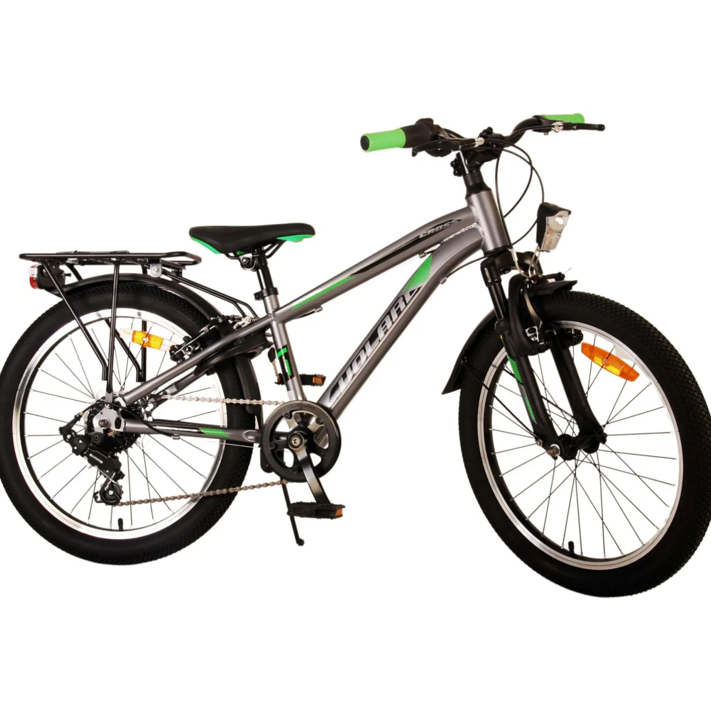 Veiligheid staat voorop! Daarom heeft deze gave fiets geen terugtraprem maar twee handremmen, 6 versnellingen, reflectoren in de wielen en verlichting op batterij voor en achter. Ook aan het comfort is gedacht. De mooie grijze Volare fiets heeft een handige achterdrager om moeiteloos al je spullen mee te nemen, een comfortabel zacht zadel, een standaard zodat je fiets altijd netjes blijft staan en een stevig slot. Om zo lang mogelijk van de fiets te kunnen genieten heeft deze een extra lange zadelpen waardoor de fiets nóg langer met het kind meegroeit. Let op, het stuur is niet in hoogte verstelbaar!
