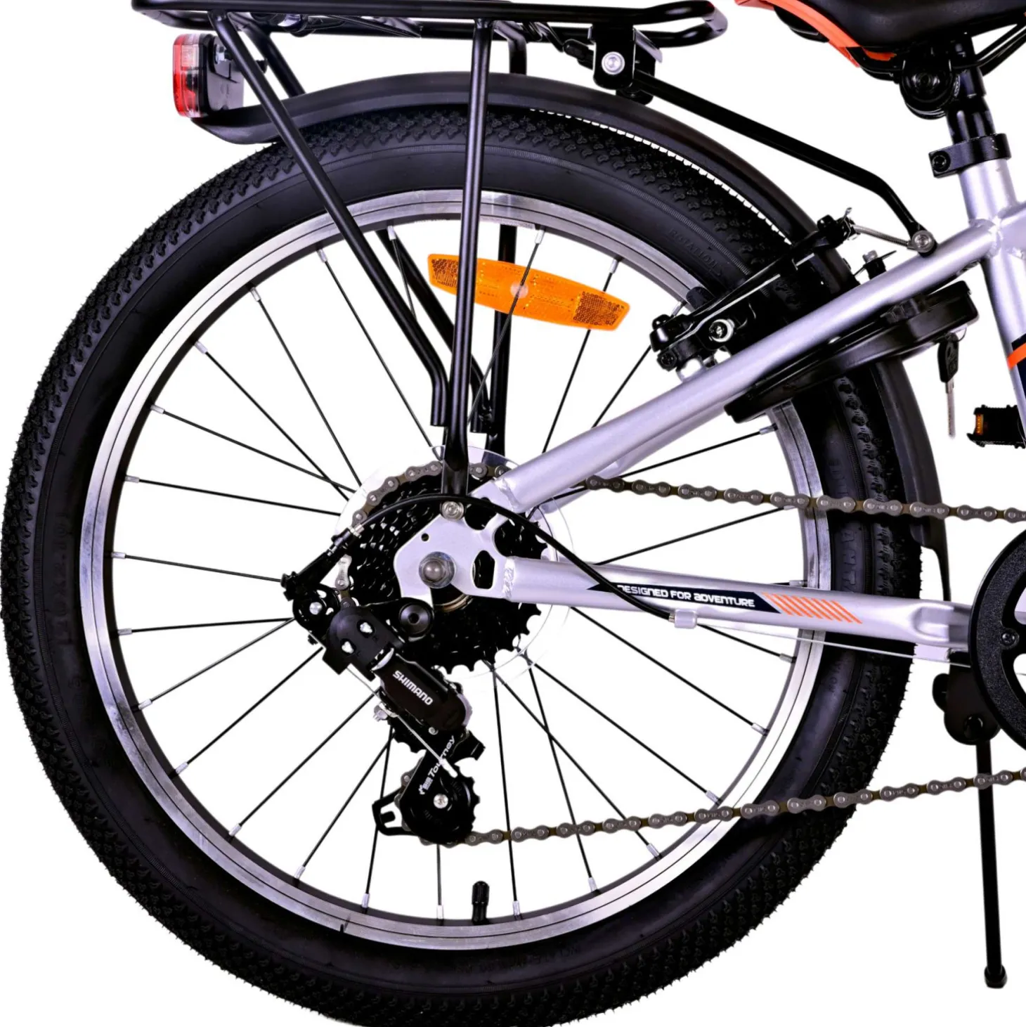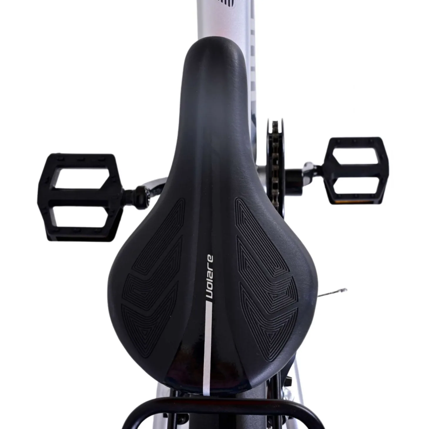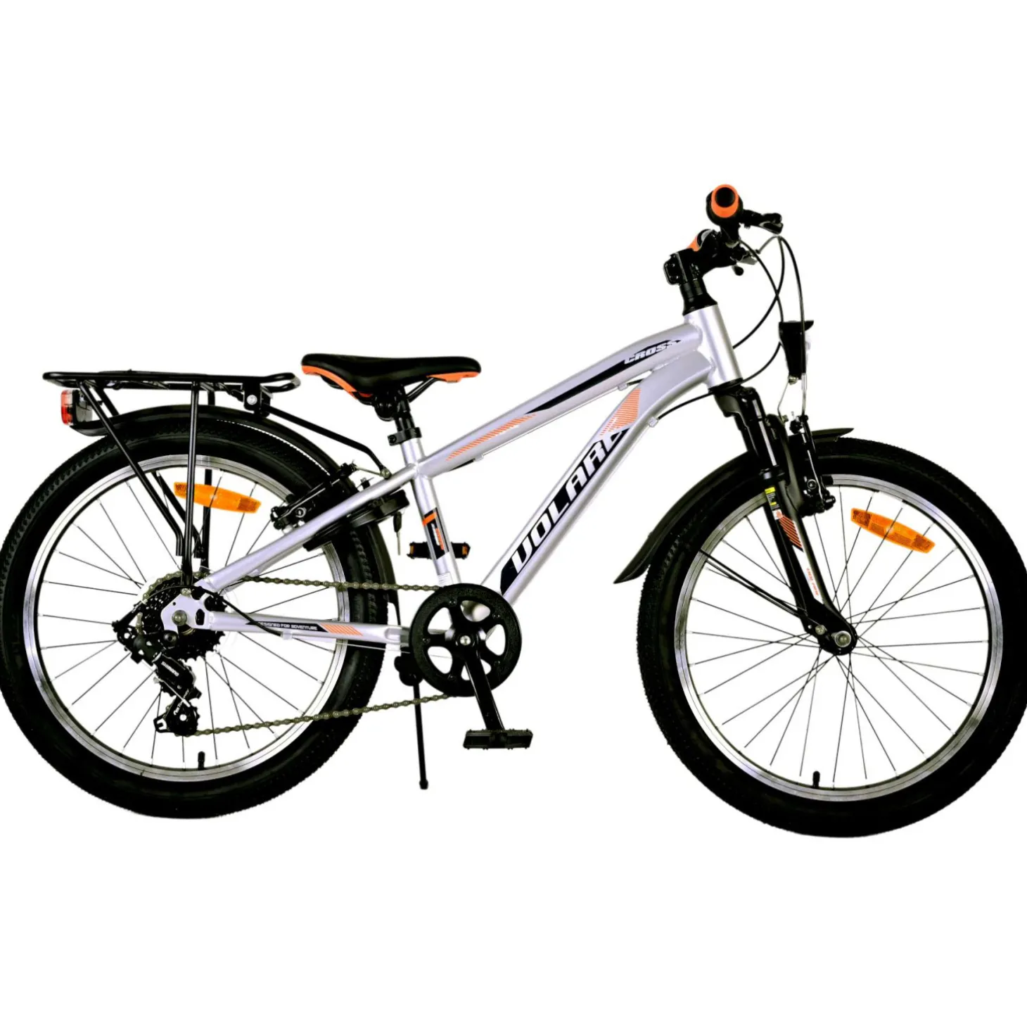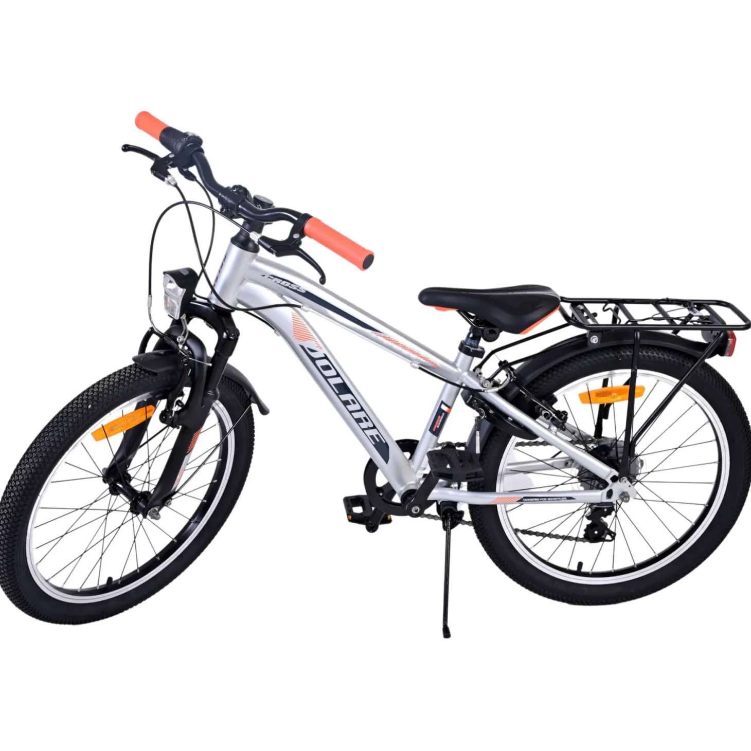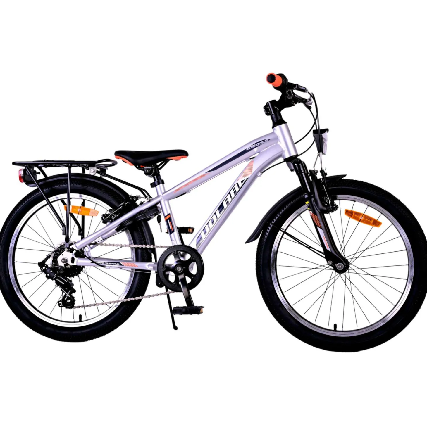 Veiligheid staat voorop! Daarom heeft deze gave fiets geen terugtraprem maar twee handremmen, 6 versnellingen, reflectoren in de wielen en verlichting op batterij voor en achter. Ook aan het comfort is gedacht. De mooie zilveren Volare fiets heeft een handige achterdrager om moeiteloos al je spullen mee te nemen, een comfortabel zacht zadel, een standaard zodat je fiets altijd netjes blijft staan en een stevig slot. Om zo lang mogelijk van de fiets te kunnen genieten heeft deze een extra lange zadelpen waardoor de fiets nóg langer met het kind meegroeit. Let op, het stuur is niet in hoogte verstelbaar!