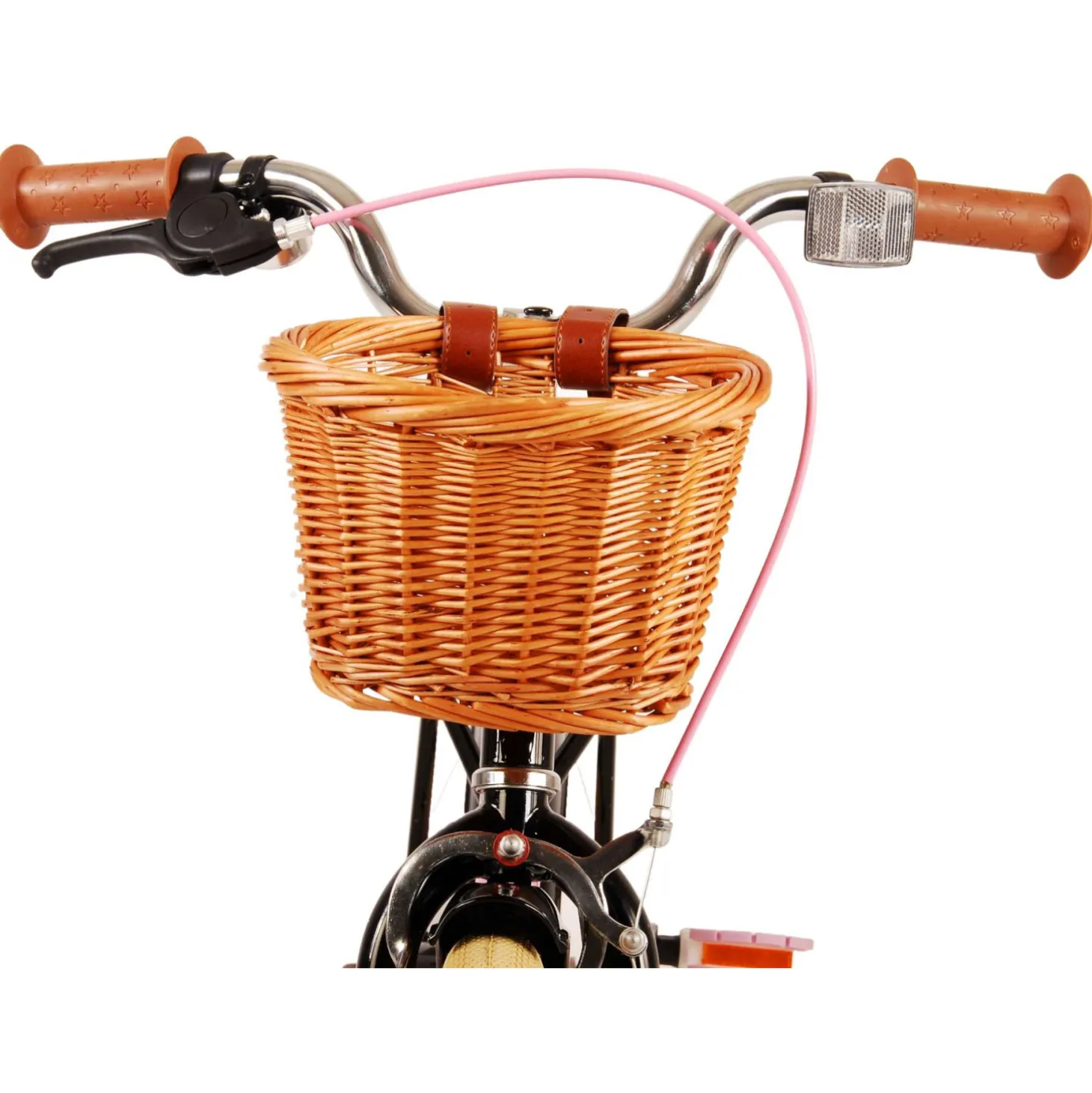 Veiligheid staat voorop! Daarom heeft deze gave fiets een handrem en terugtraprem, afneembare zijwieltjes en een gesloten kettingkast. Daarnaast heeft de fiets reflectoren achter en een leuke bel. Ook aan het comfort is gedacht. De mooie zwarte Volare fiets heeft een handige achterdrager, een luxe zacht zadel en een handig rieten mandje. Om zo lang mogelijk van de fiets te kunnen genieten zijn het zadel en stuur in hoogte verstelbaar. Wordt geleverd inclusief al het montagemateriaal dat nodig is om de fiets in elkaar te zetten!