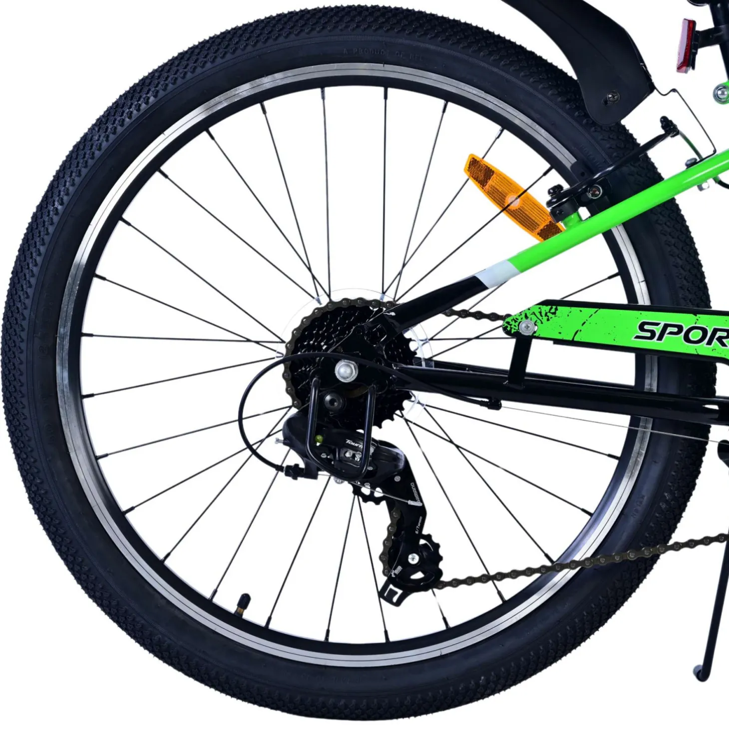 Veiligheid staat voorop! Daarom heeft deze gave fiets heeft 2 handremmen en geen terugtraprem.. Daarnaast heeft de fiets 7 versnellingen een leuke bel en reflectoren in de wielen. Ook aan het comfort is gedacht. De mooie zwarte Volare fiets met groene accenten heeft een luxe zacht zadel en extra zachte handvaten, een handige achterdrager, en een stevig frame dat wel tegen een stootje kan. Verder heeft de fiets een standaard zodat hij netjes blijft staan en een sterk slot. Om zo lang mogelijk van de fiets te kunnen genieten heeft deze een extra lange zadelpen waardoor de fiets nóg langer met het kind meegroeit en ook het stuur is in hoogte verstelbaar.