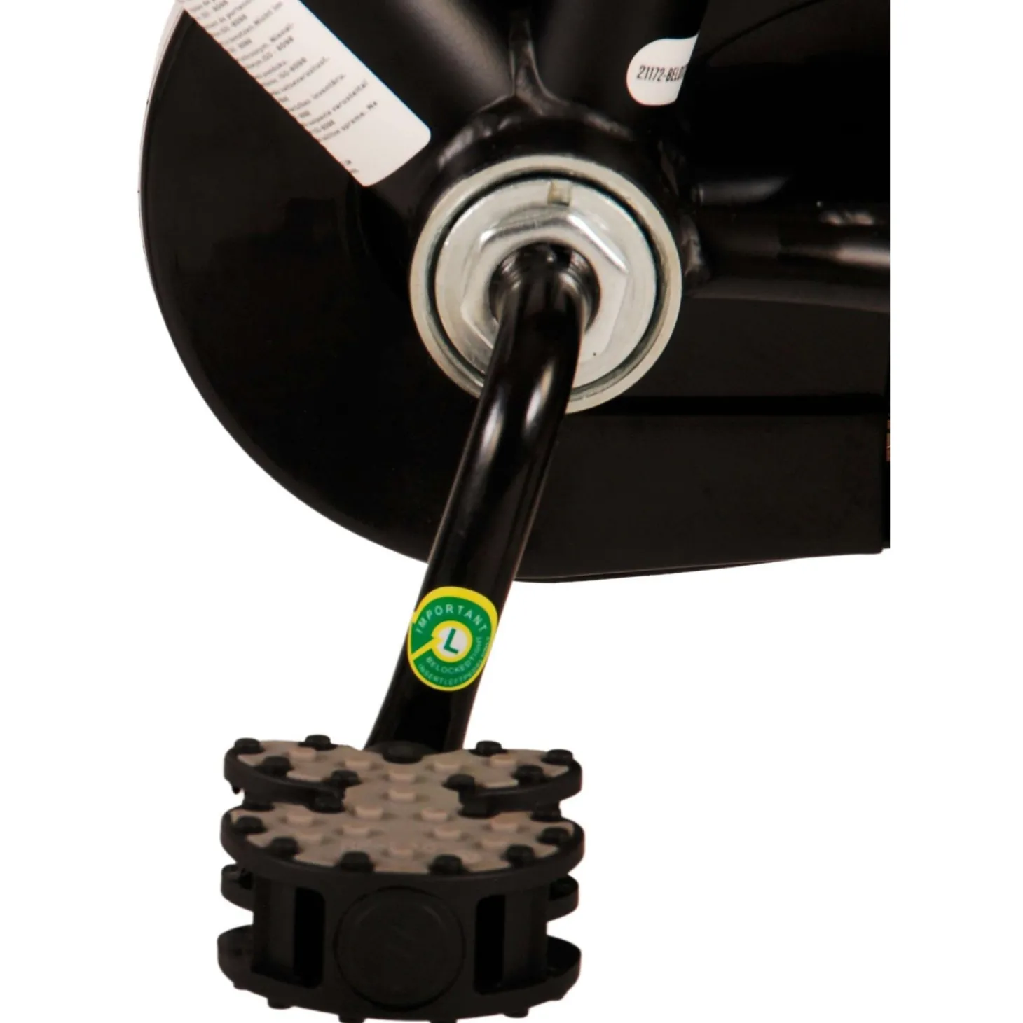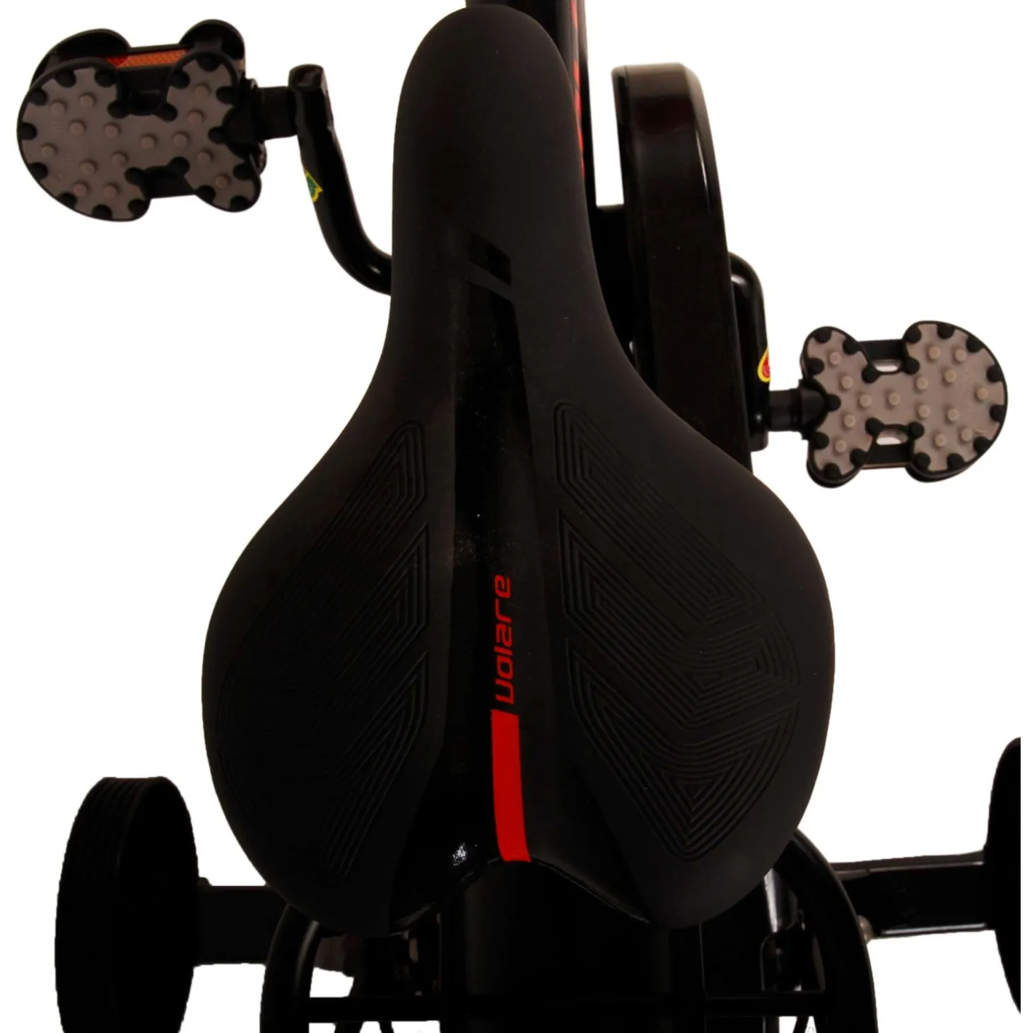Veiligheid staat voorop! Daarom heeft deze gave fiets een handrem en terugtraprem, een gesloten kettingkast en afneembare zijwieltjes. Daarnaast heeft de fiets een leuke bel. Ook aan het comfort is gedacht. De mooie zwarte Volare fiets met rode accenten heeft een luxe zacht zadel, een handige achterdrager, en extra lange spatborden om al het vuil tegen te houden. Om zo lang mogelijk van de fiets te kunnen genieten zijn het zadel en stuur in hoogte verstelbaar. Wordt geleverd inclusief al het montagemateriaal dat nodig is om de fiets in elkaar te zetten!