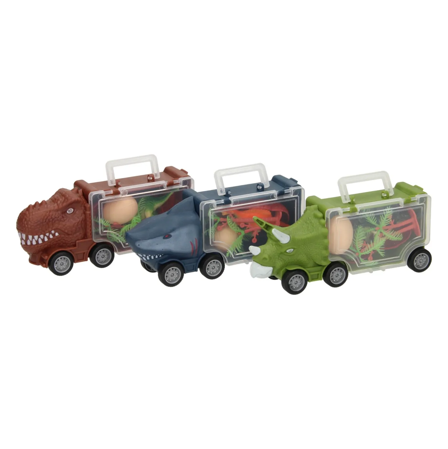 De set bevat 3 verschillende trucks en allerlei leuke accessoires, zoals bomen, kleine dinosaurussen en dinosauruseieren. Geschikt voor kinderen vanaf 3 jaar!
