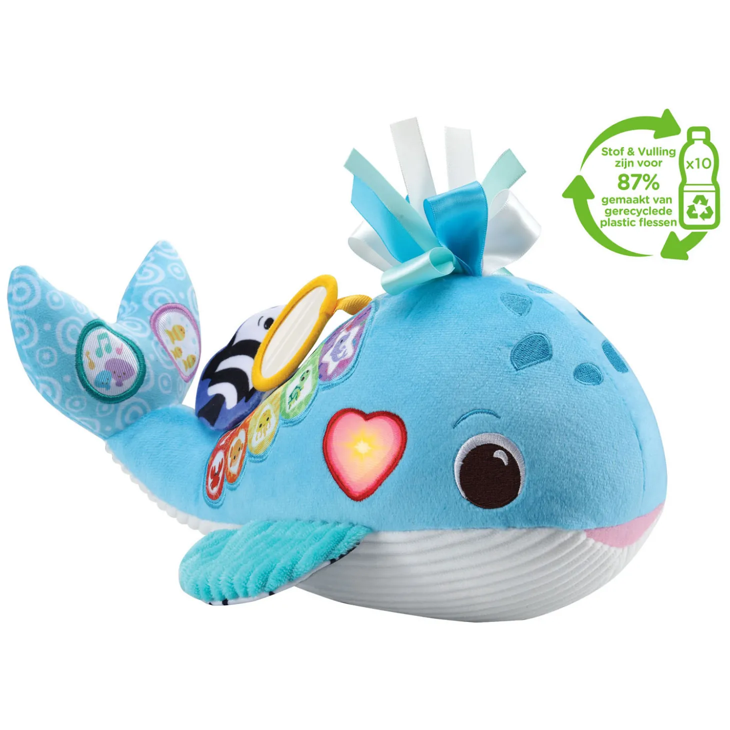 Leer cijfers, kleuren, vormen en nog veel meer met deze zachte walvis gemaakt van 10 gerecyclede plastic flessen!