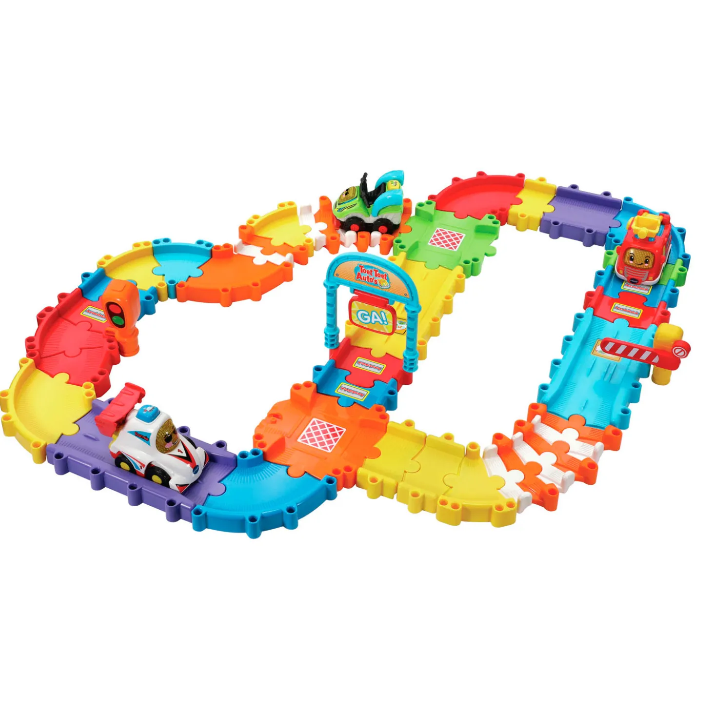 Deze set bevat wegdelen, een slagboom, poort en verkeerslicht die je zelf kunt plaatsen. Geschikt voor kinderen vanaf 12 maanden.