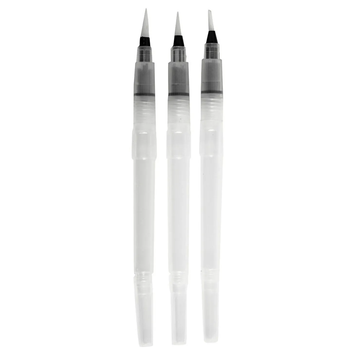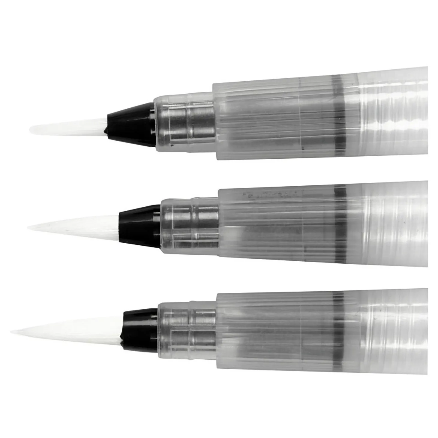 Ronde penselen met fijn nylon haar en een holle, plastic steel voor het water. Vul met water en geeft water af met lichte druk op de steel. Perfect voor het tekenen en schilderen met aquarel.