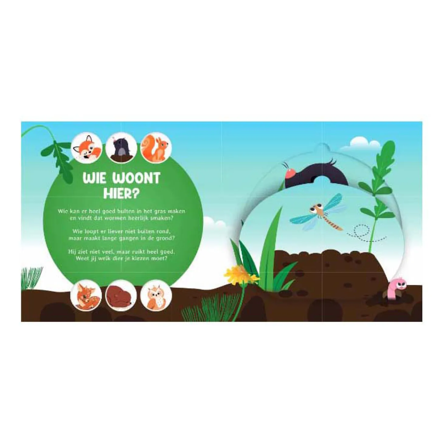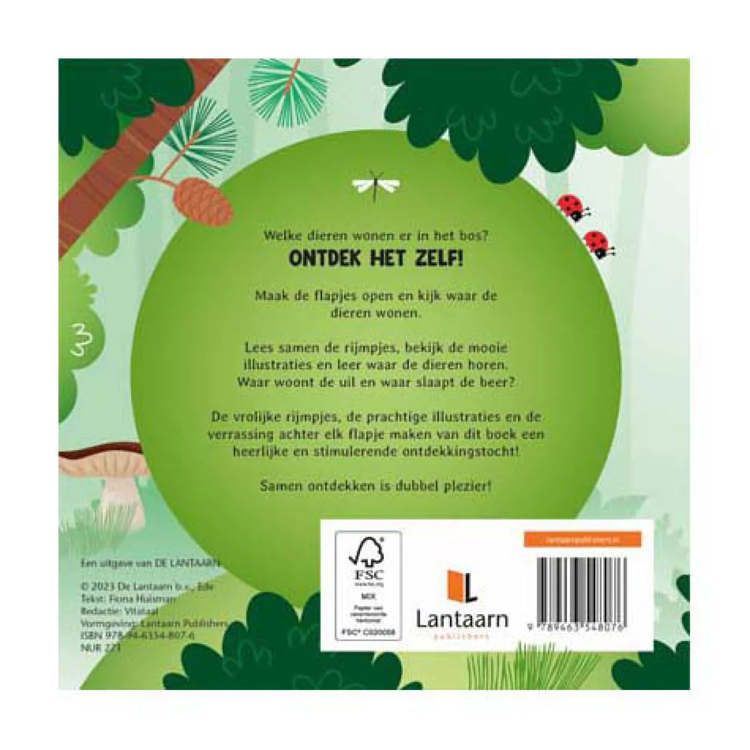 Welke dieren wonen er in het bos? Ontdek het zelf! Maak de flapjes open en kijk waar de uil woont en de beer slaapt. Stevig kartonboek met vrolijke rijmpjes om samen op ontdekkingstocht te gaan.