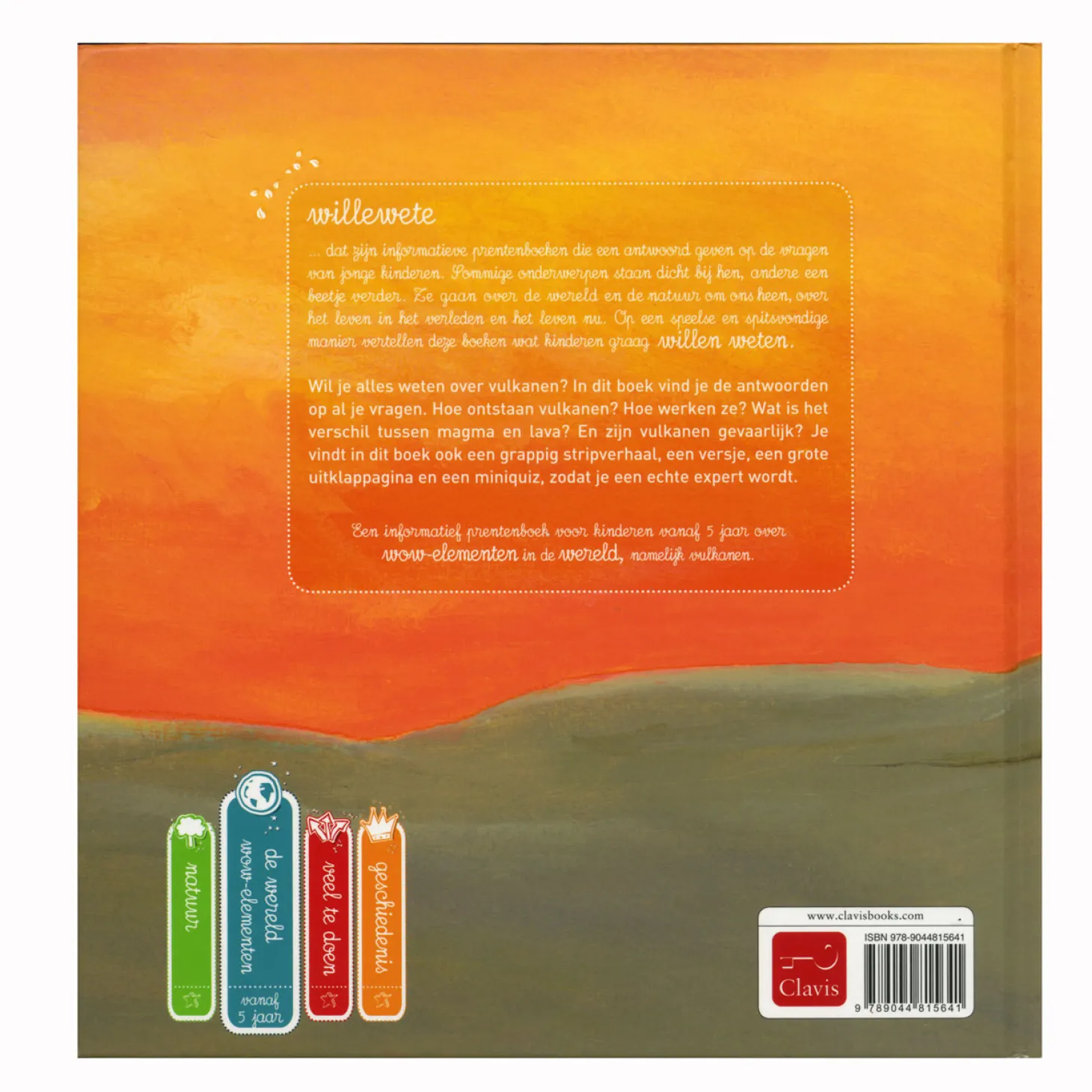 Wil je alles weten over vulkanen? In dit boek vind je de antwoorden op al je vragen. Hoe ontstaan bergen en vulkanen? Hoe werken ze? Wat is het verschil tussen magma en lava? Zijn er vulkanen op Mars? En waarom zijn vulkanen zo gevaarlijk? Je vindt in dit boek ook een grappig stripverhaal, leuke opdrachten, een grote uitklappagina en een miniquiz, zodat je een echte expert wordt.