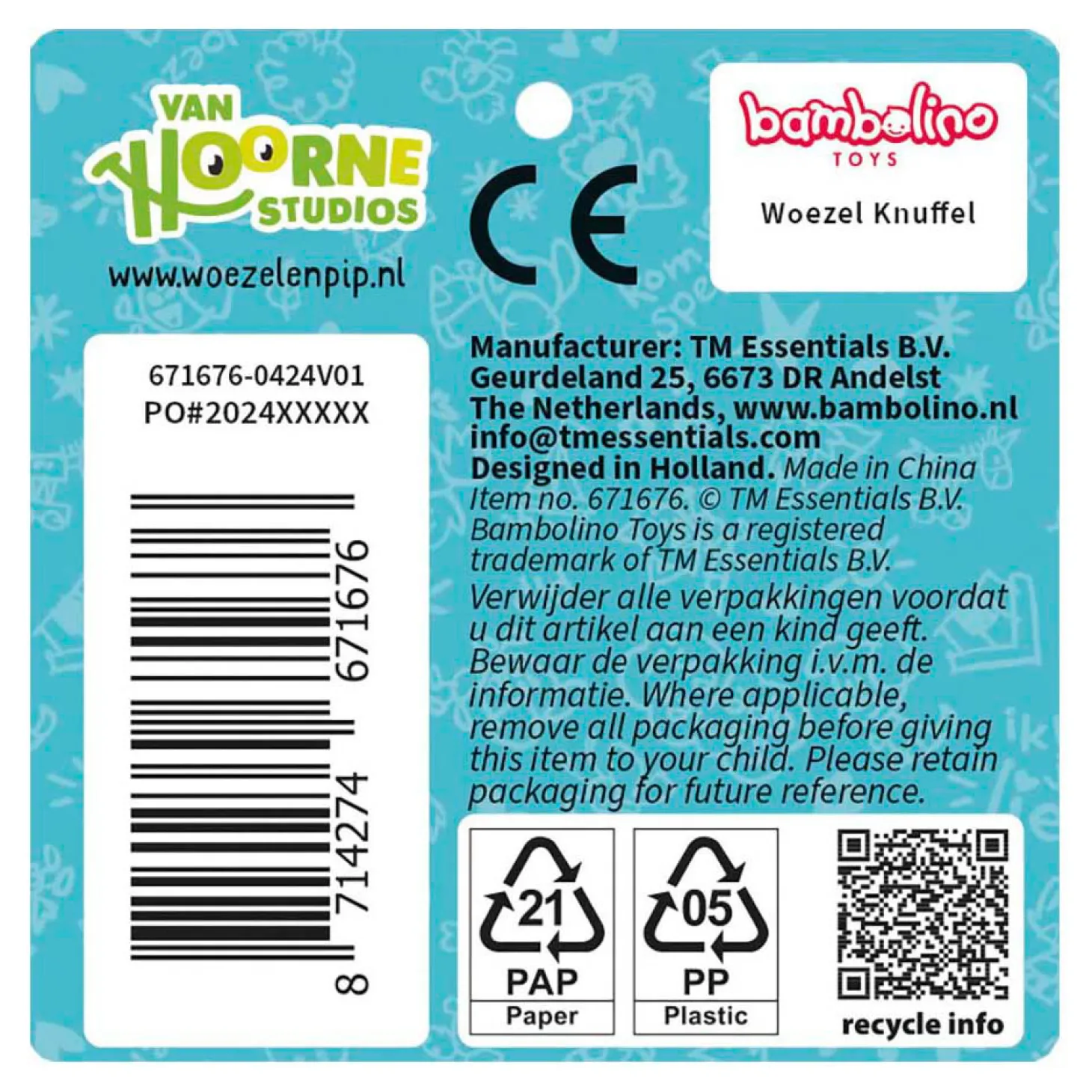 - Waarschuwing: Niet geschikt voor kinderen onder de 3 jaar ivm kleine onderdelen.