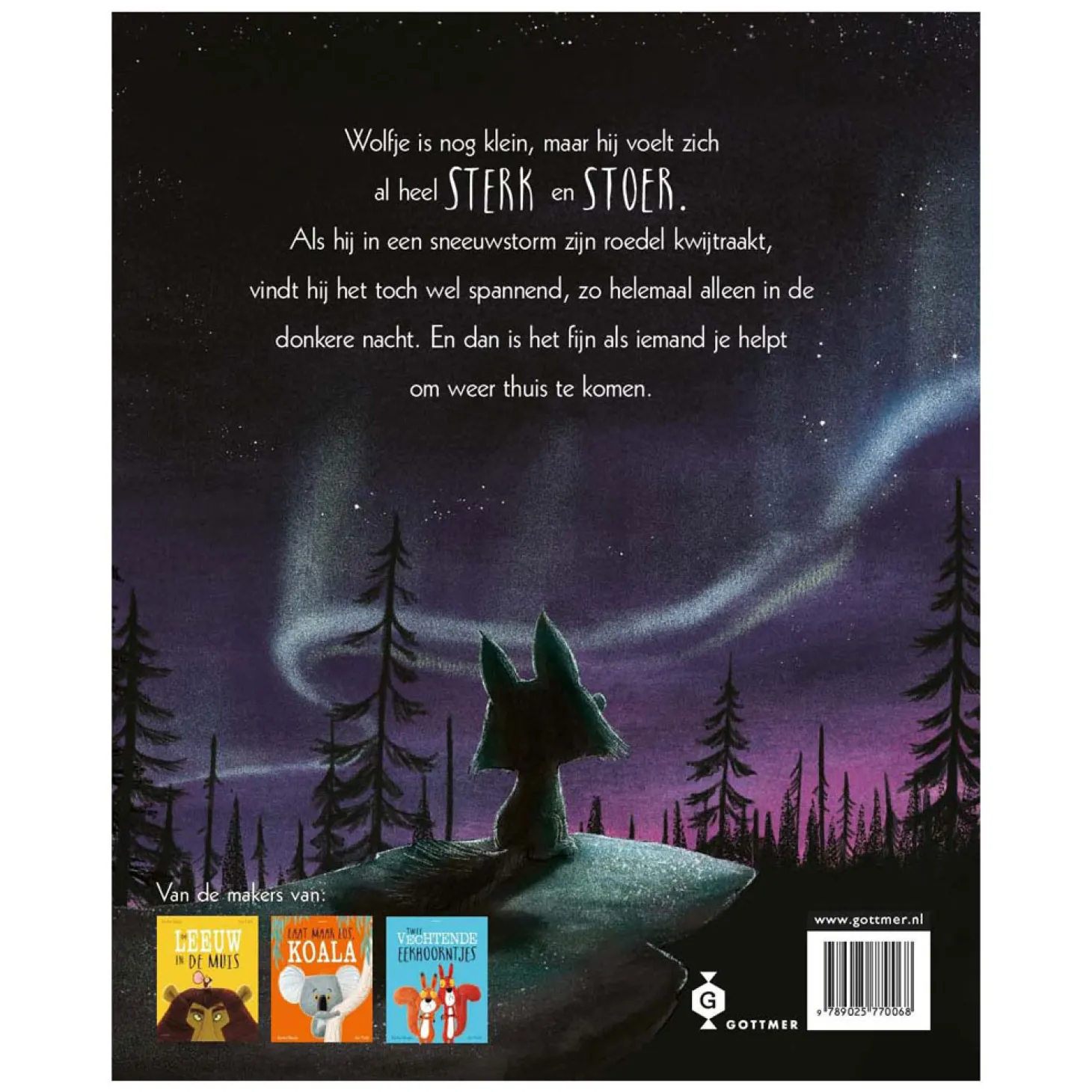 Wolfje is een stoer wolvenjong dat graag groot wil zijn en denkt niets of niemand nodig te hebben. Maar als Wolfje verdwaalt in het ijskoude sneeuwlandschap, leert hij een belangrijke les: soms heb je iemand nodig die je in veiligheid brengt en weer op weg helpt. Voor kinderen vanaf 4 jaar.
