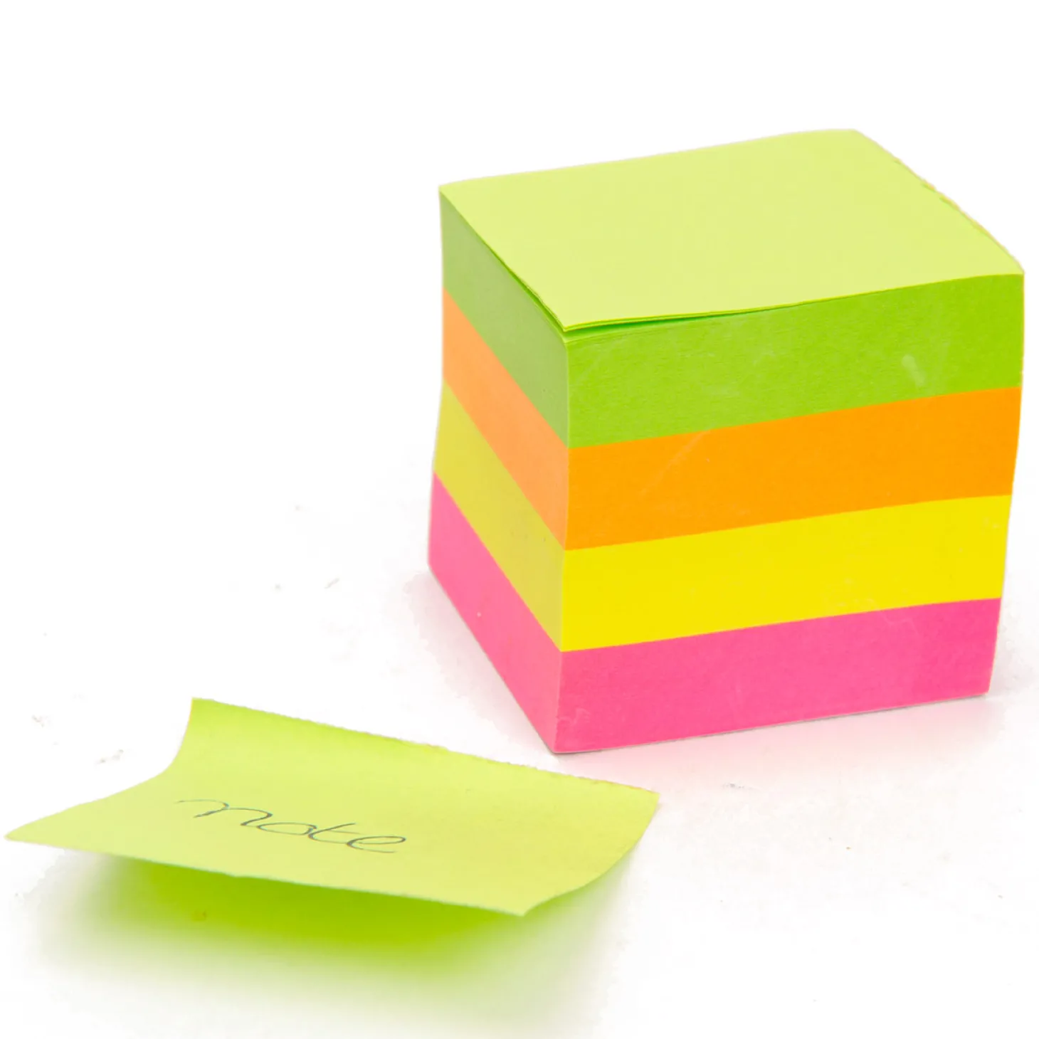 Zelfklevende mini notitieblaadjes in vier verschillende kleuren.
