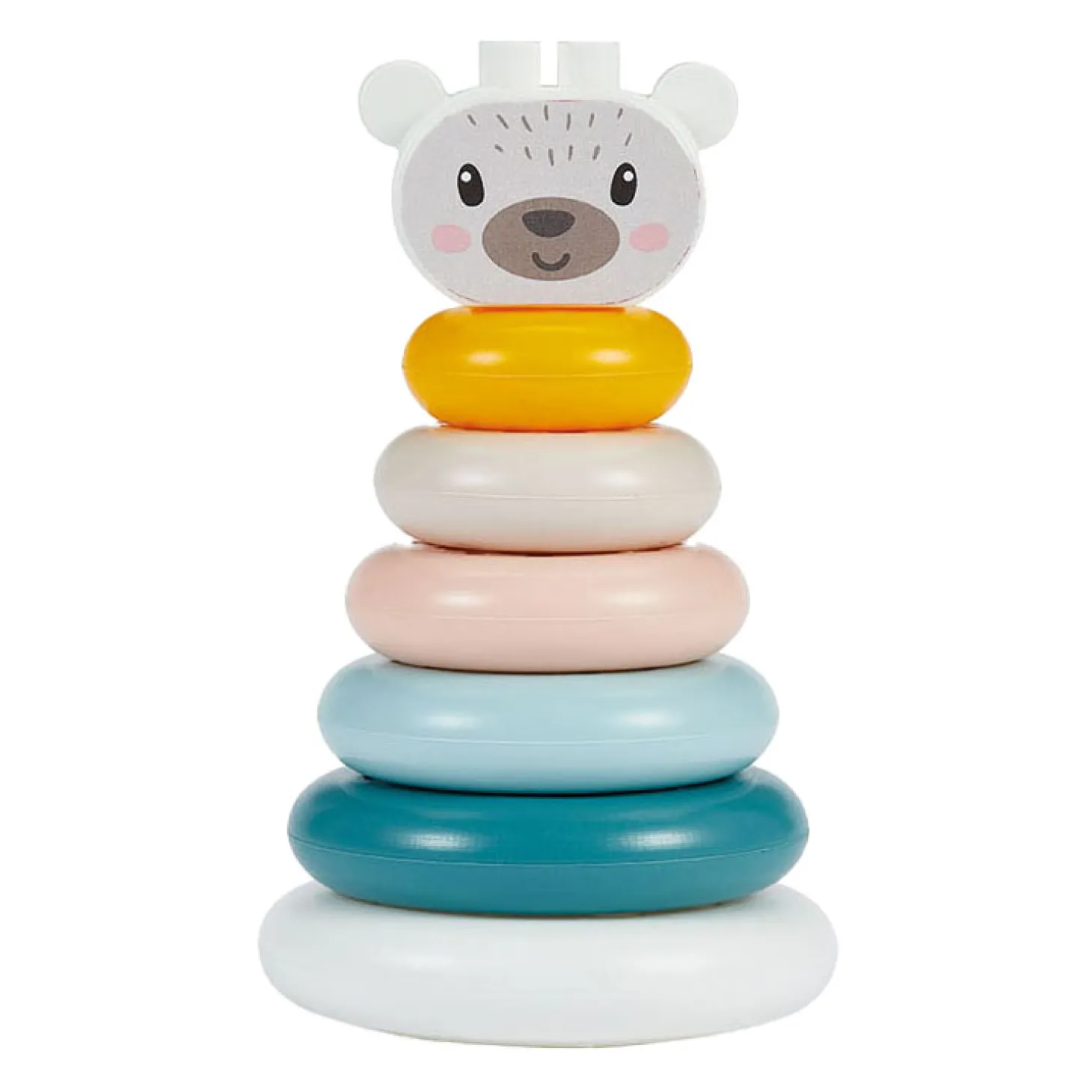 EEN KLASSIEKER: deze stapeltoren bestaat uit 7 ronde stukken in verschillende maten en kleuren.