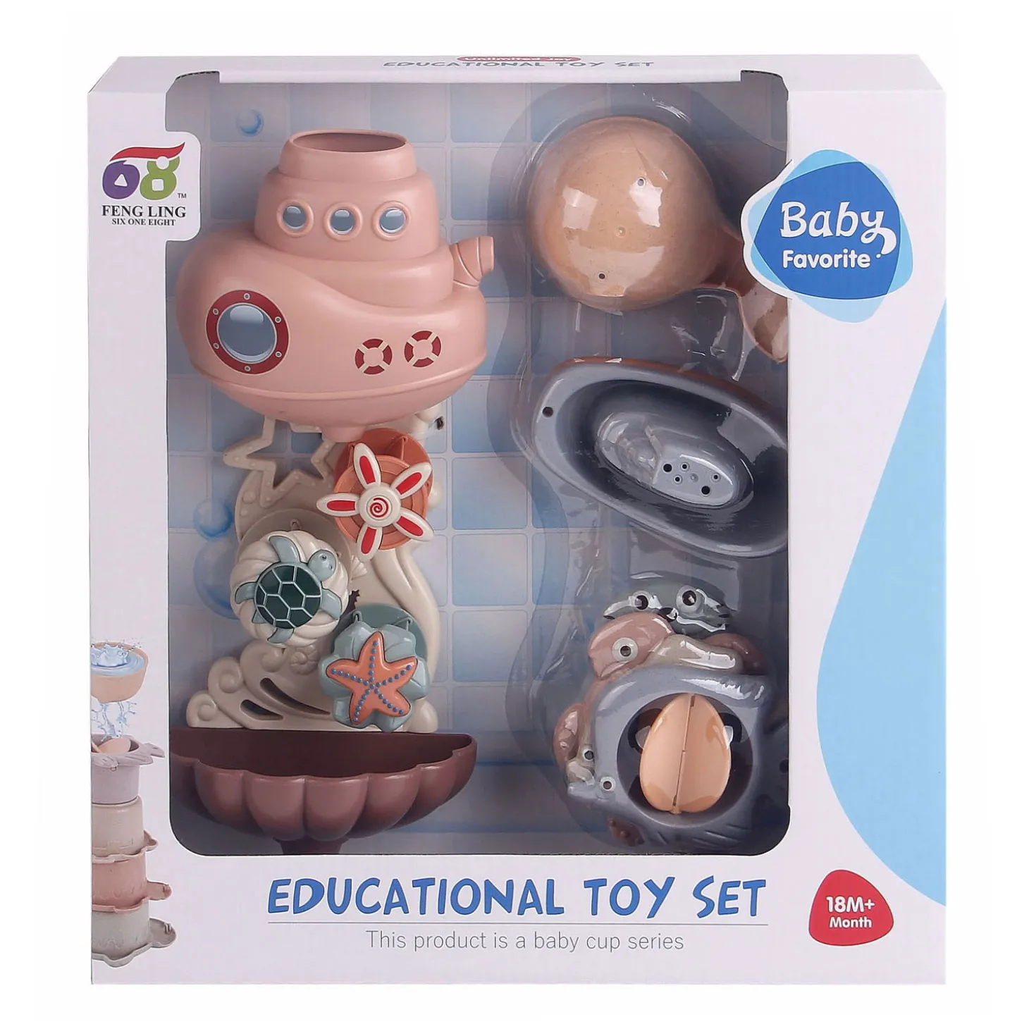 • Mooie roze pastelkleuren en leuke designs van zeesterren, zeedieren en een duikboot