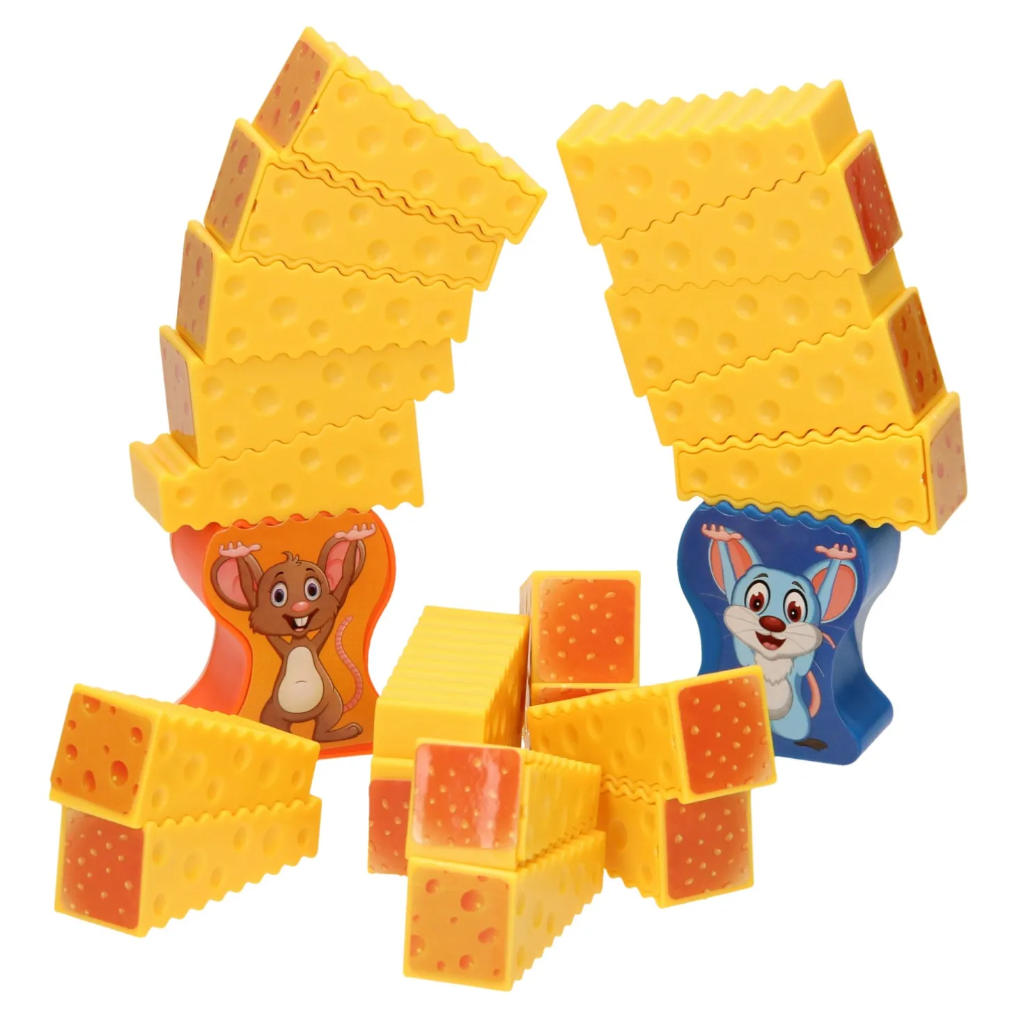 Met het stapelspel oefen je oog-hand coördinatie, fijne motoriek, geduld en samenwerken. Je kunt dit spel met één t/m vier personen spelen. Inhoud: twee muizen, twintig stukjes kaas, stickers om de spelstenen mee te beplakken en de instructies voor alle drie de spellen.