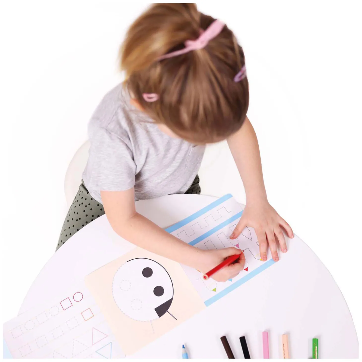 Zorgvuldig geselecteerde, leuke oefeningen stimulerende kinderen om vormen na te bootsen en objecten roziger te tekenen. Het is een natuurlijke introductie tot leren schrijven en tevens een middel tot creatieve expressie.