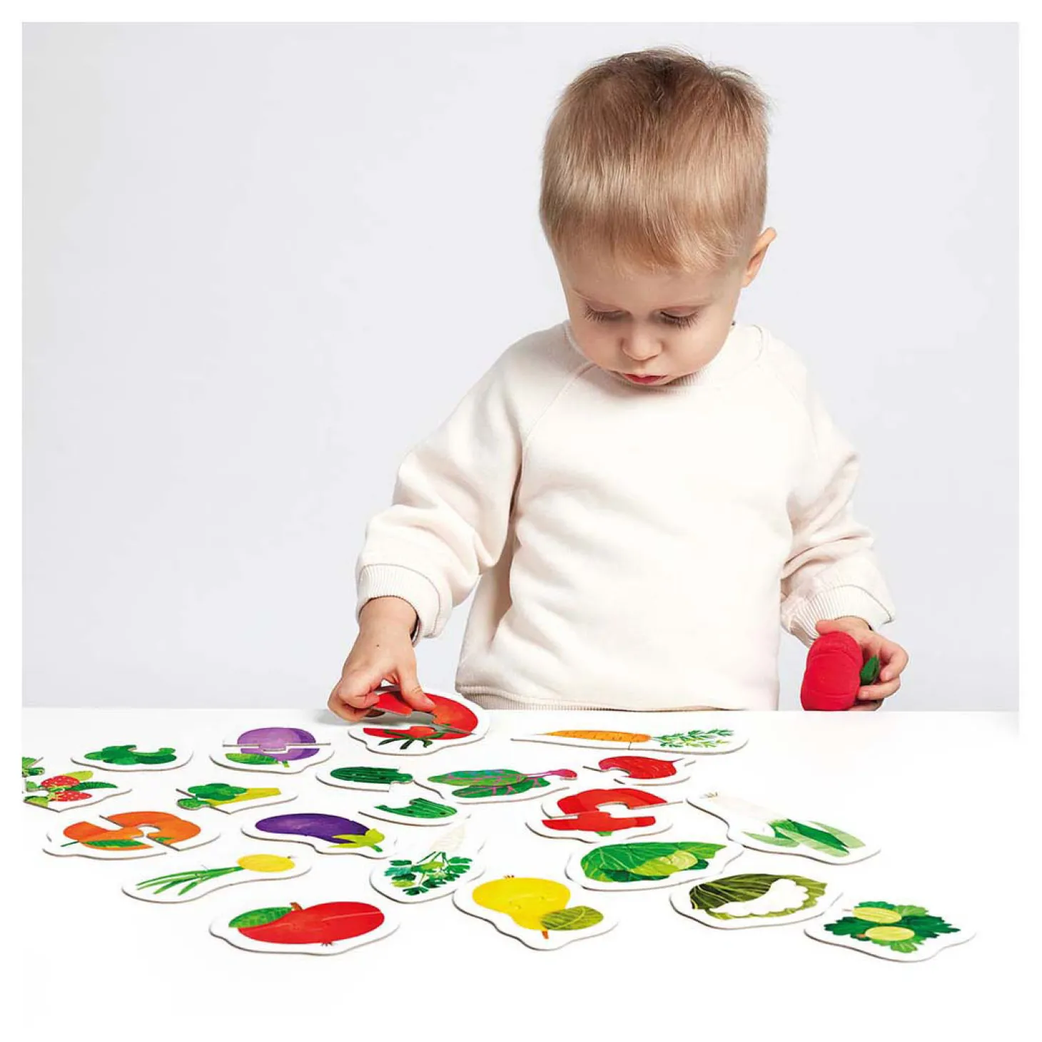Ontdek de wereld door middel van vrolijk spel! Oefen de fijne motoriek, scherp observatievermogen en logisch denken door smakelijke helften uit de tuin te matchen. Benoem fruit, groenten, hun details en kleuren. Welke lekkernijen vind je het lekkerst? Misschien is het tijd voor een kookavontuur! Deze puzzelset is een ideaal cadeau voor jonge ontdekkingsreizigers.