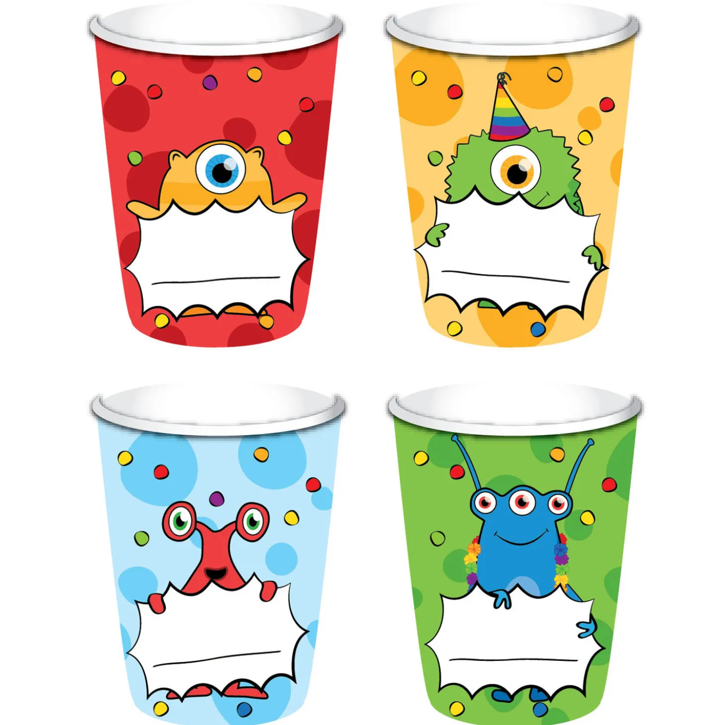 Drink tijdens je feestje je fris uit deze Monster Party bekers. Op de beker staat een grappig monster. Ook is er een speciaal vakje op de beker om de naam te noteren van één van de feestvierders. Verpakt per 8 stuks.