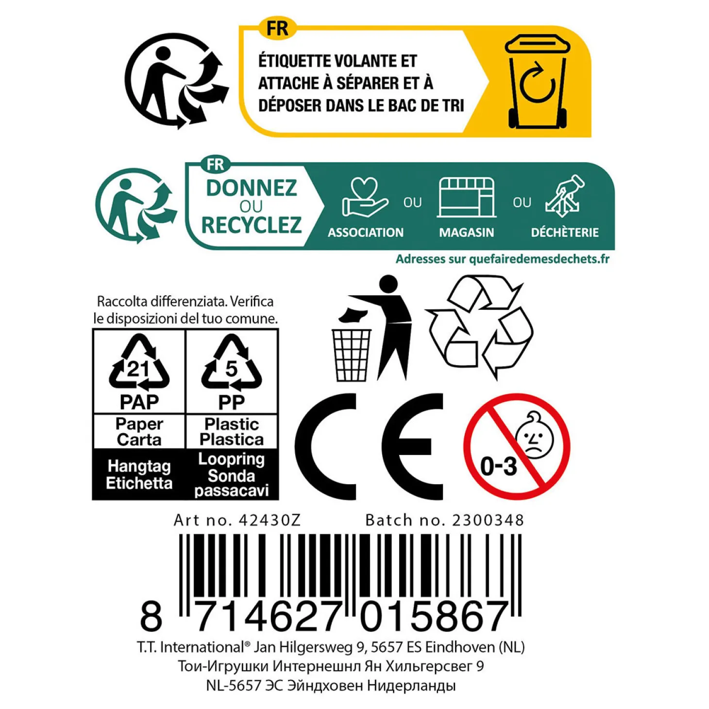 - Waarschuwing: Niet geschikt voor kinderen onder de 3 jaar ivm kleine onderdelen.