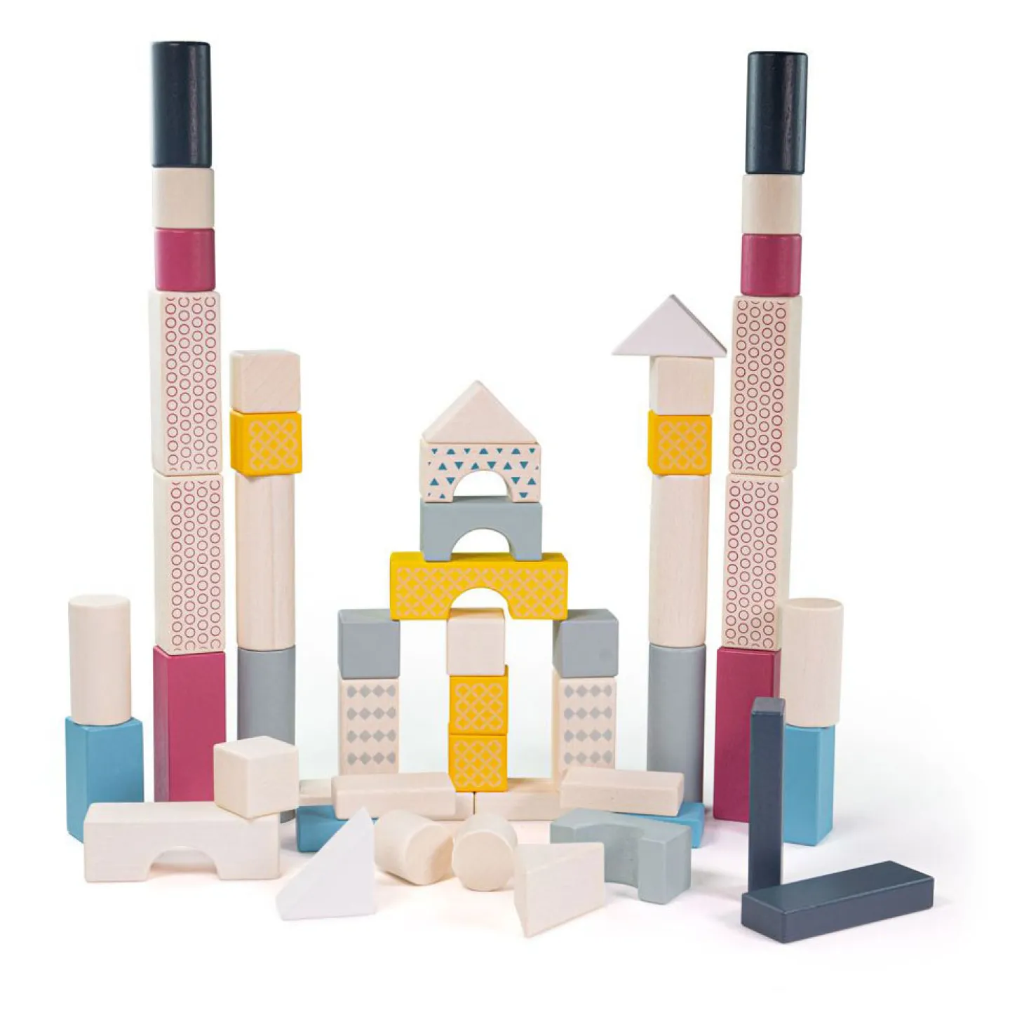 De verschillende vormen en kleuren van de houten bouwblokken inspireren kleintjes om op hun eigen manier te spelen. Speelgoed met houten stenen helpt om de hand-/oogcoördinatie, concentratie en behendigheid te verbeteren terwijl drukke kleine handen de vormen bouwen, stapelen en rollen. Kleine handjes kunnen een verscheidenheid aan patronen, kleuren en vormen ontdekken met onze FSC-gecertificeerde trommel van 50 houten stenen. Kies uit vierkanten, driehoeken, cilinders, rondingen en meer – de speelmogelijkheden zijn eindeloos, waardoor dit een fantastisch Montessori-speelgoed is. Gemaakt van 100% FSC-gecertificeerde materialen die duurzaam zijn geoogst uit FSC-bossen. Voldoet aan de huidige Europese normen. Niet-giftige verven en lakken. Geschikt voor 12 maanden +.