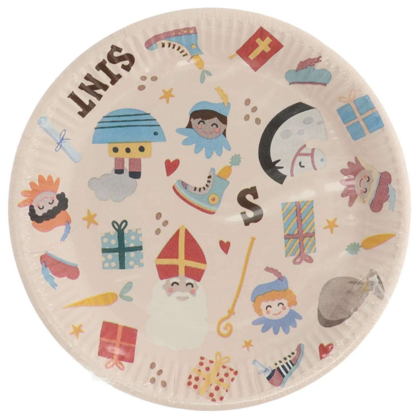 Al het lekkers wordt extra lekker op deze vrolijke Sinterklaas (eet)borden uit de 2023 collectie “Sint en Pieten”. De borden hebben een diameter van 18 cm en zitten per 8 stuks verpakt. Dit artikel is gemaakt van papier.