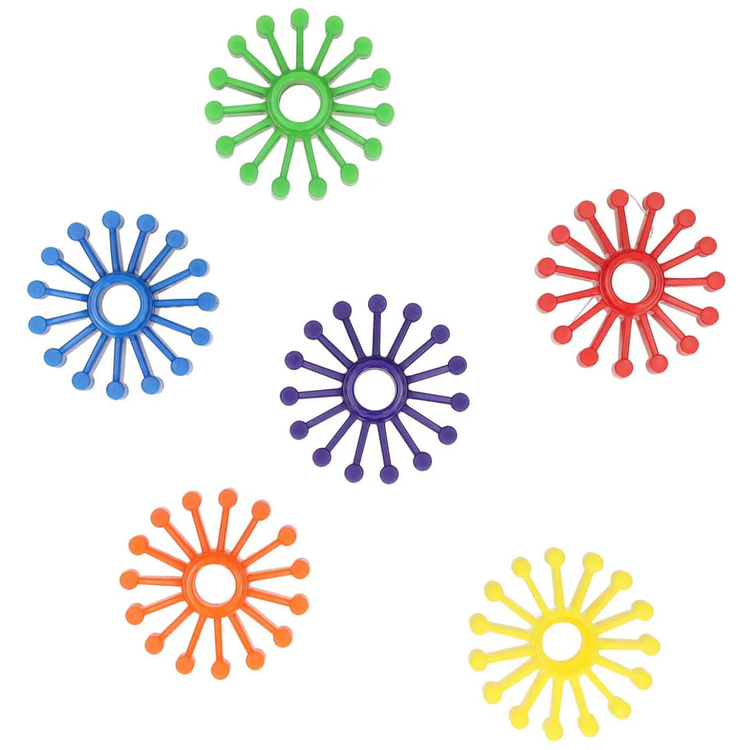 •In zes kleuren: rood, geel, blauw, groen, oranje en paars