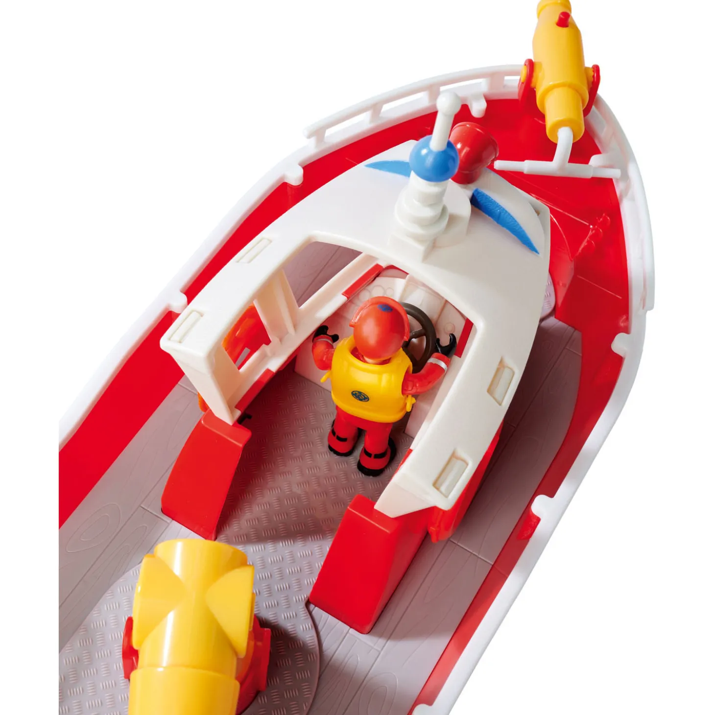 • Met waterkanonnen – de 32 cm lange reddingsboot heeft aan beide uiteinden een waterkanon, waarmee de kinderen waterpijlen kunnen schieten of water kunnen spuiten.