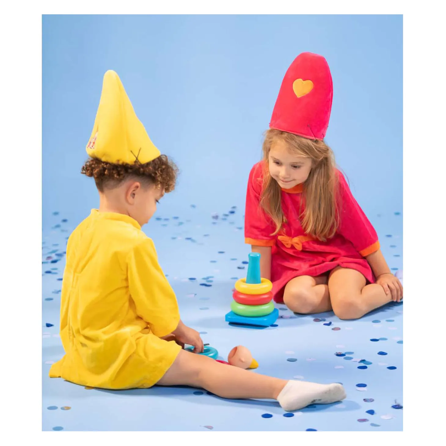 Stapelen maar! Deze stapelset bestaat uit 5 kleurrijke ringen van verschillende formaten. Een ware uitdaging voor je peuter of kleuter om ze in de juiste volgorde van groot naar klein te stapelen. Bumba’s hoofdje maakt het extra aantrekkelijk.