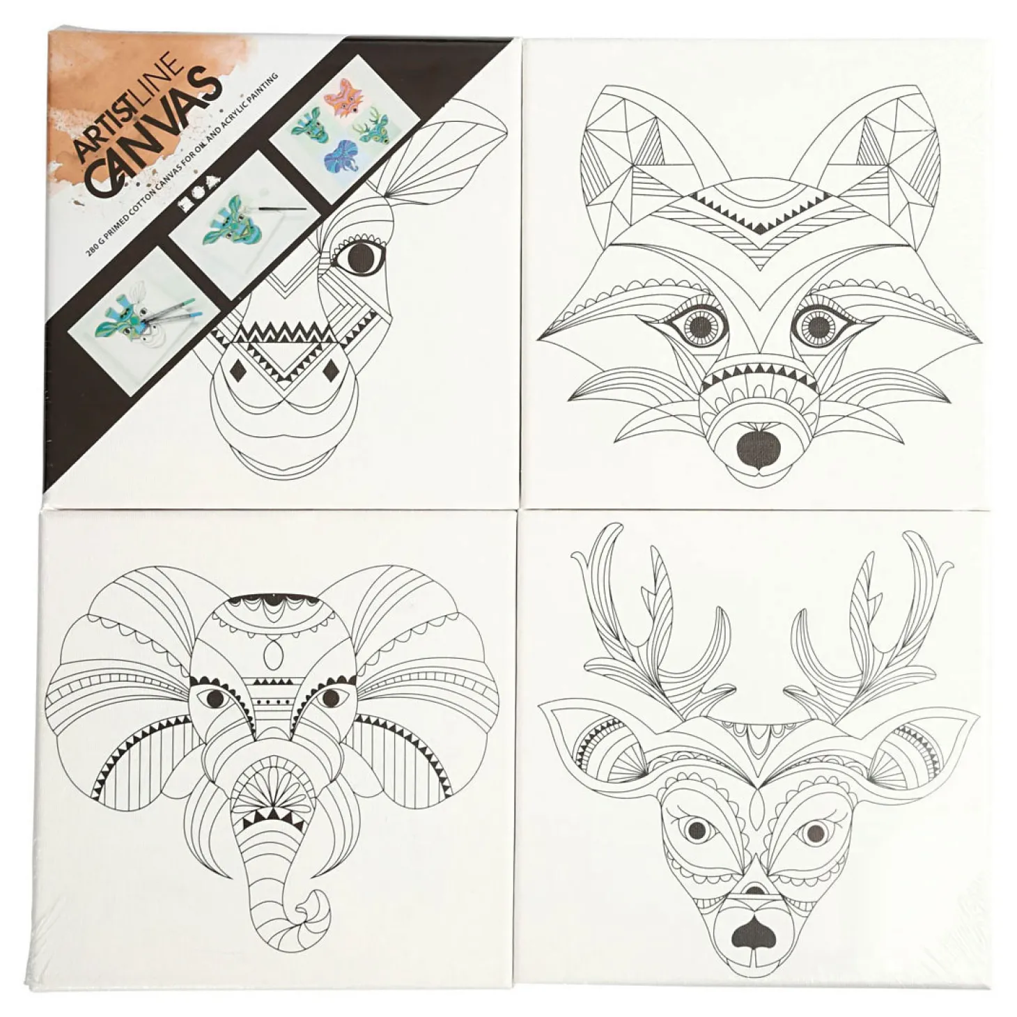 Canvas met Dierenprint, 4st.
