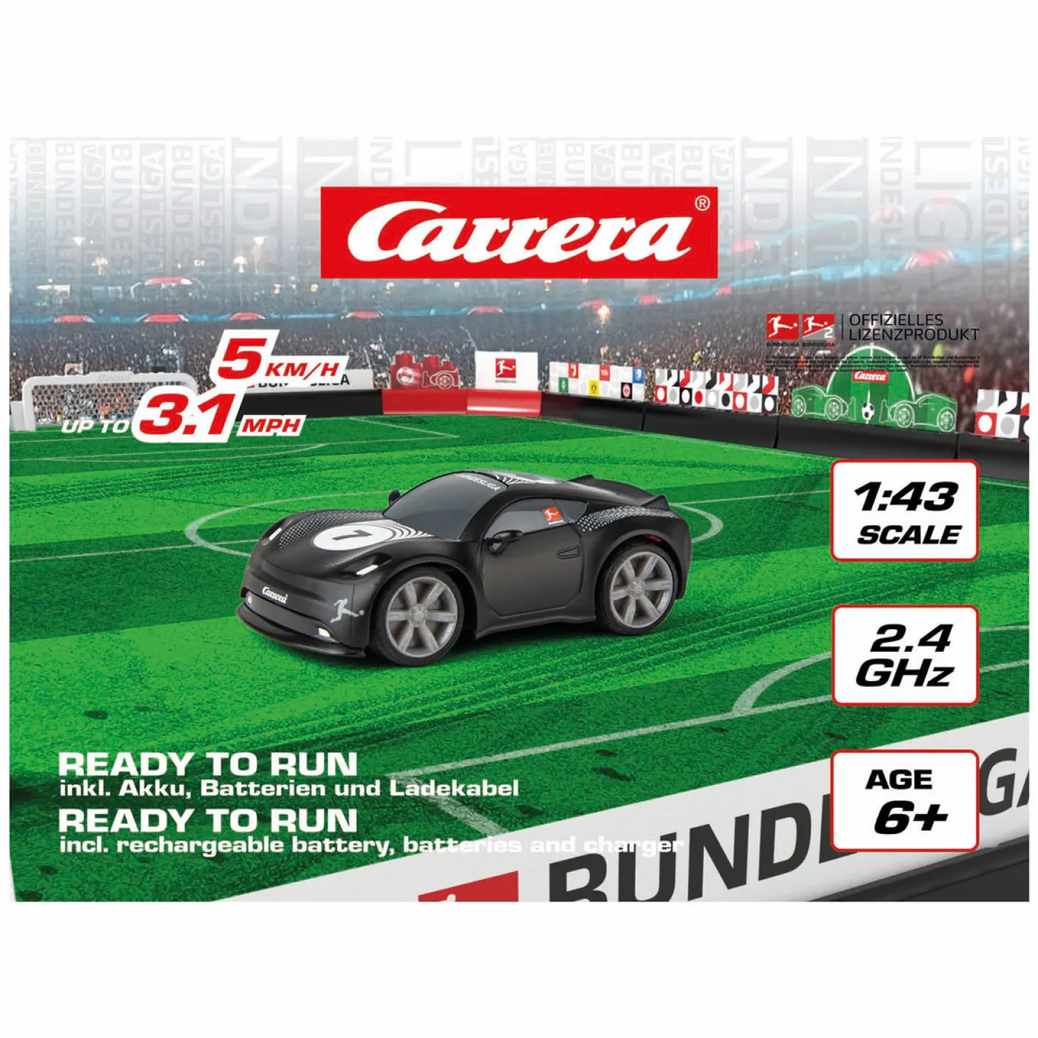 De Duitse Bundesliga zet nu ook het RC-circuit in beroering! Het 7,1 cm lange zwarte mini RC-voertuig raast met snelheden tot 5 km/u door de kinderkamer en heeft echte grip dankzij de rubberen banden. Dankzij de originele Bundesliga-licentie kunnen jonge fans vanaf 6 jaar hun auto personaliseren met stickers van 24 verschillende clubs en zo tijdens de race hun verbondenheid met hun favoriete club uiten. De voetbalrace duurt 15 minuten totdat de auto 30 minuten is bijgetankt via de meegeleverde USB-kabel. Met de nauwkeurige Full Function 2,4 GHz-besturingstechnologie overwint de auto elk obstakel.