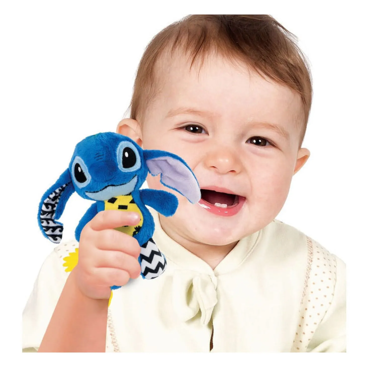 Een hele zachte Stitch waarmee de allerkleinsten met multisensoriƫle elementen kunnen spelen Hij is gemakkelijk beet te pakken en te hanteren, en ondersteunt de zintuiglijke ontwikkeling dankzij het bijtelement, het piepelement en de verschillende textielsoorten Dankzij de handige ring kan Stitch aan de kinderwagen, de wieg of waar je ook wil worden opgehangen, om hem altijd bij je te hebben Ondersteunt de ontwikkeling van de gehoorzin en de handvaardigheid en ondersteunt de motorische en sensorische vaardigheden Een spel voor de allerkleinsten, dat een perfect cadeau is voor een baby