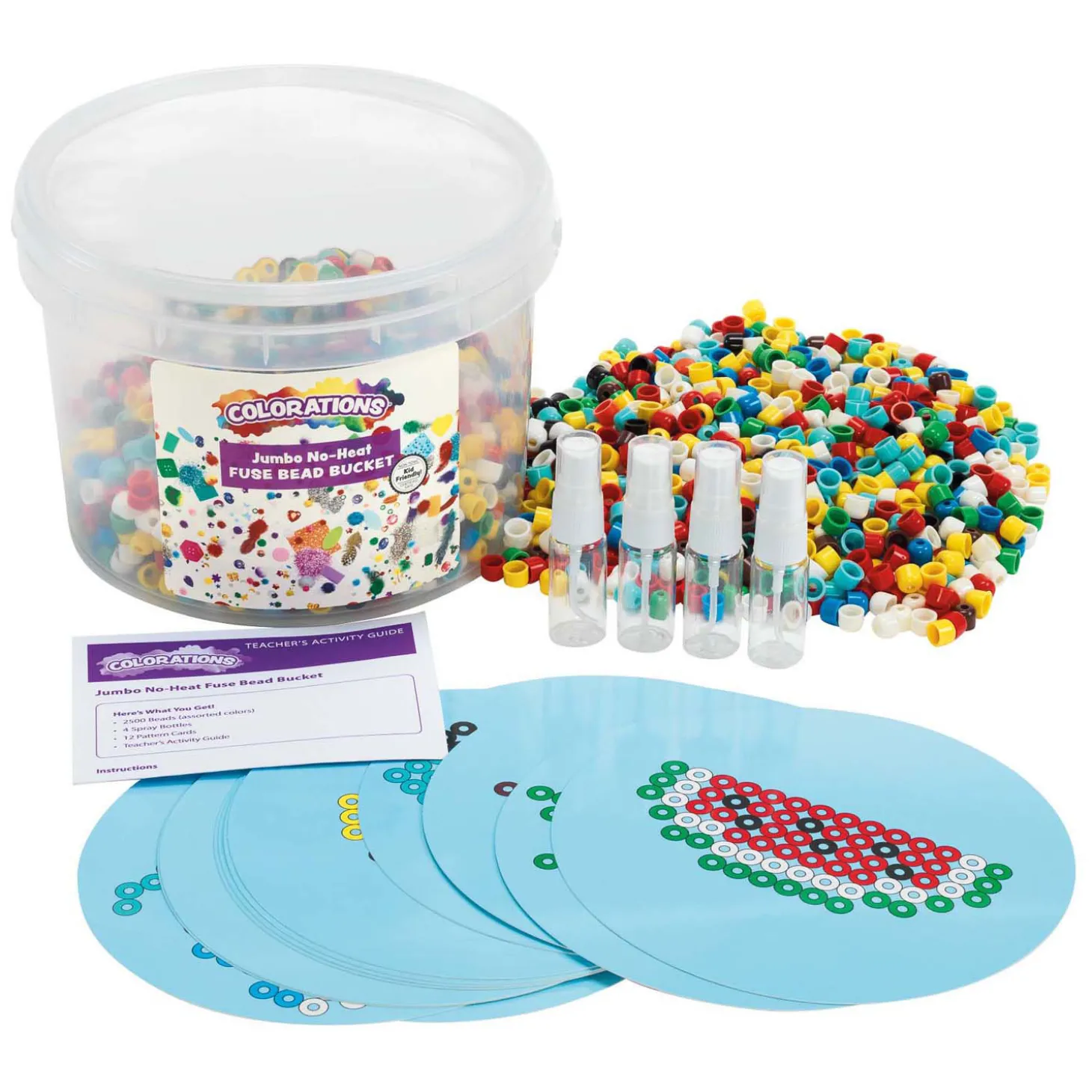 Jumbo No Heat Fuse kralenemmer met 2500 kralen. Maak je kralenontwerp, voeg een beetje water toe en het blijft plakken! Je hebt geen warmte nodig om de kralen te laten versmelten. Een verscheidenheid aan kleurrijke kralen om veel kleurrijke ontwerpen te maken. Leuk en creatief knutselen!