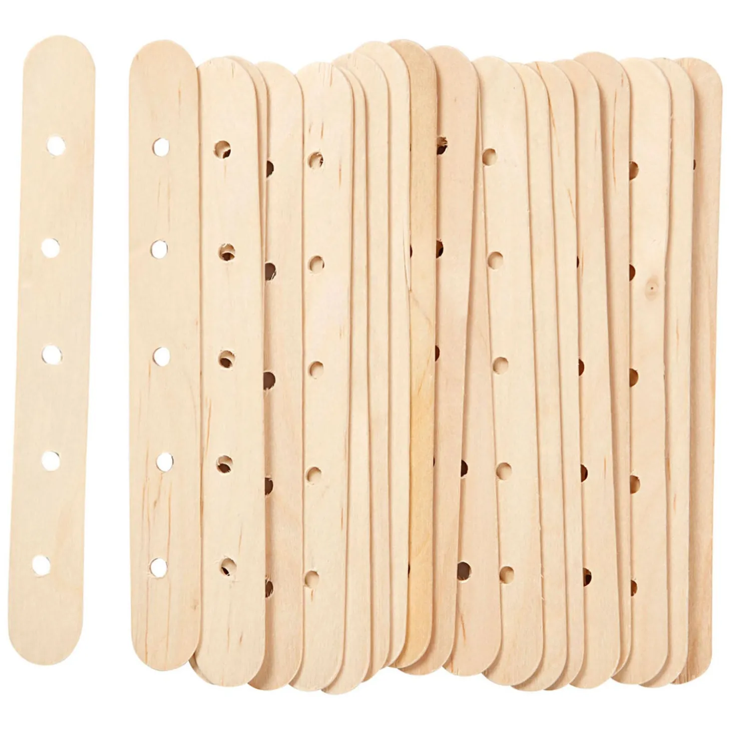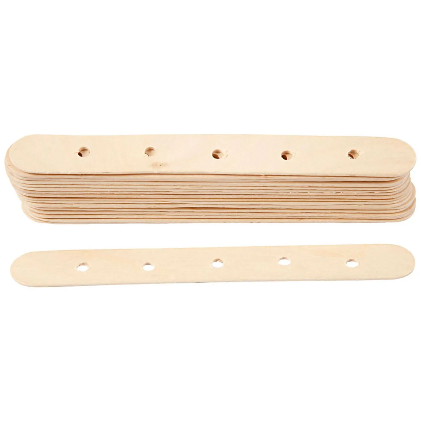 Platte blank houten constructiestokjes met geboorde gaten, ideaal voor constructies en kleine bouwprojecten. Gatgrootte 4 mm.