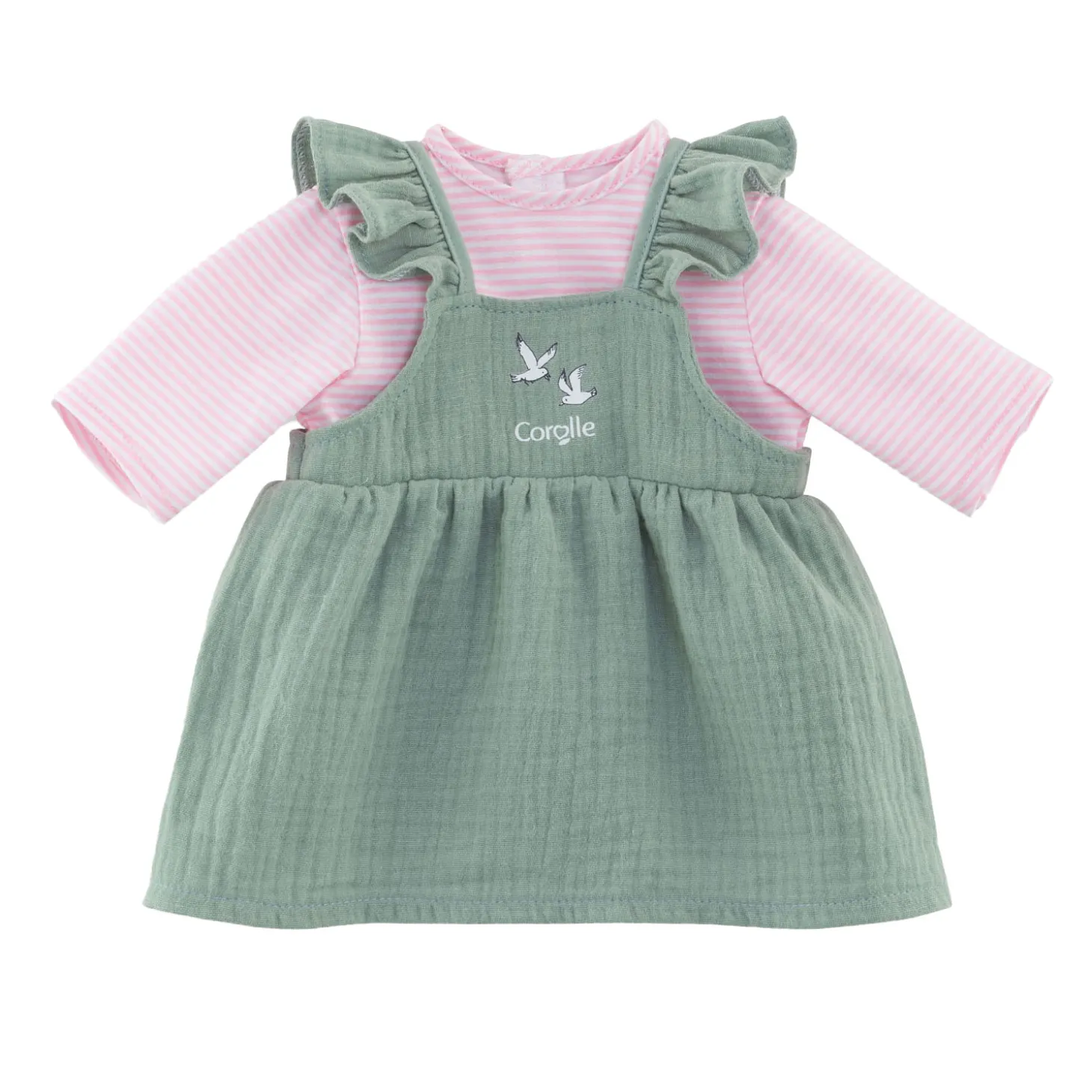 Dit kledingstuk voor grote babypoppen van 42 cm maakt deel uit van een gevarieerde collectie kleding en accessoires in het Mon Grand Poupon Corolle-assortiment.
