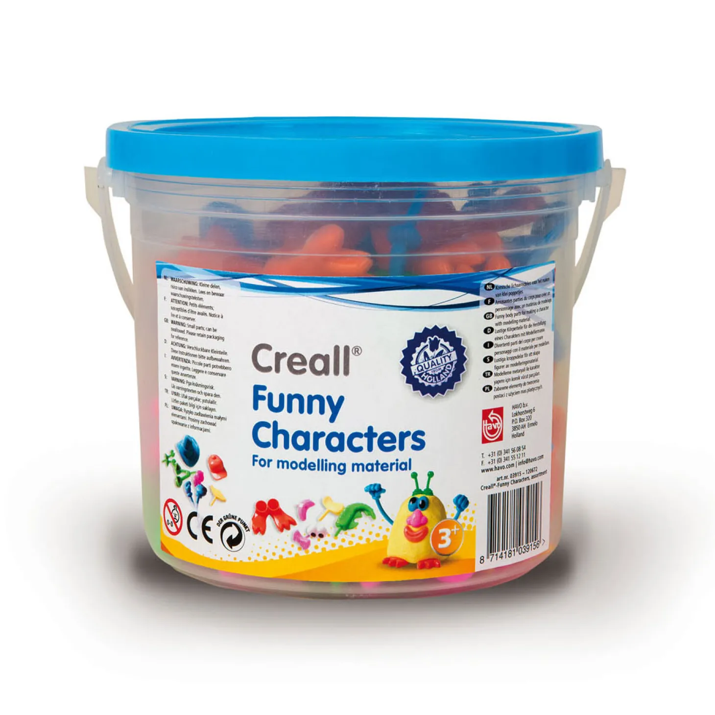 Creall assortiment van wel 130 komische kunststof lichaamsdelen voor het maken van kleine poppetjes gecombineerd met klei. Geef jouw klei figuurtje een gezicht met de grappige klei vormpjes en prikkertjes. Van voetjes tot handjes, oogjes en hoofddeksels,de emmer zit vol met wel 130 klei accessoires! Ideaal voor op school en kinderdagverblijf. (Exclusief klei.)