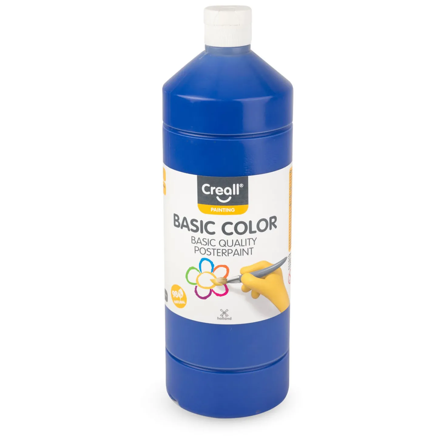 De 1 liter fles donkerblauwe Creall Schoolverf is ideaal om te gebruiken voor klassen en andere grote groepen.