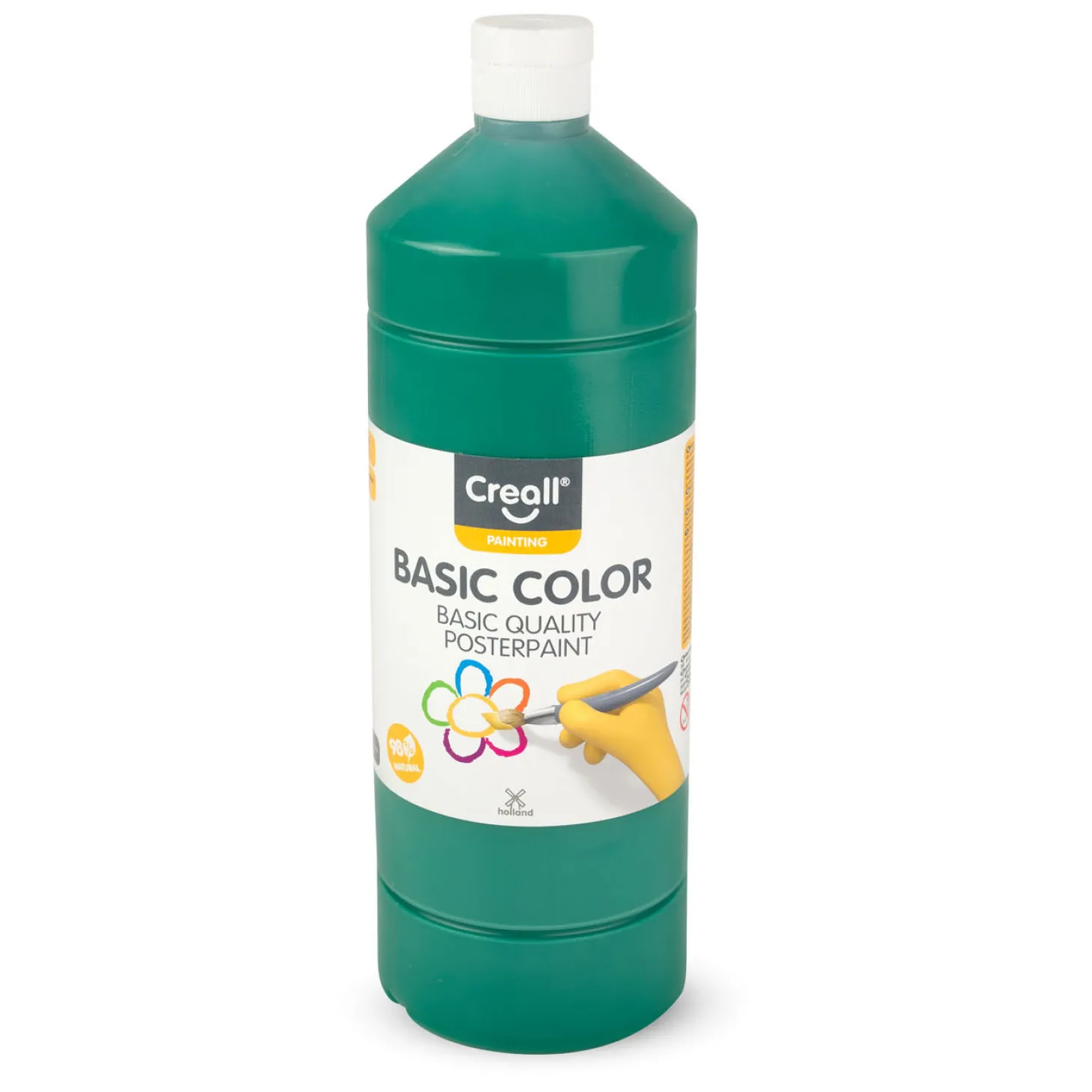 De 1 liter fles donkergroene Creall Schoolverf is ideaal om te gebruiken voor klassen en andere grote groepen.