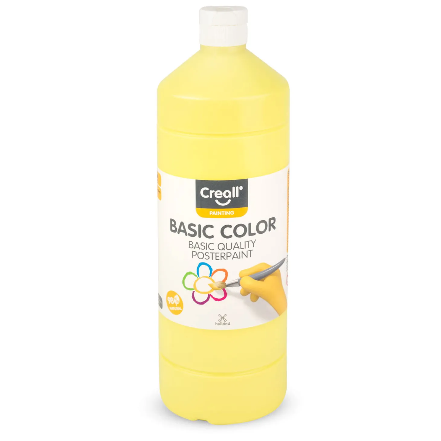 De 1 liter fles lichtgele Creall Schoolverf is ideaal om te gebruiken voor klassen en andere grote groepen.