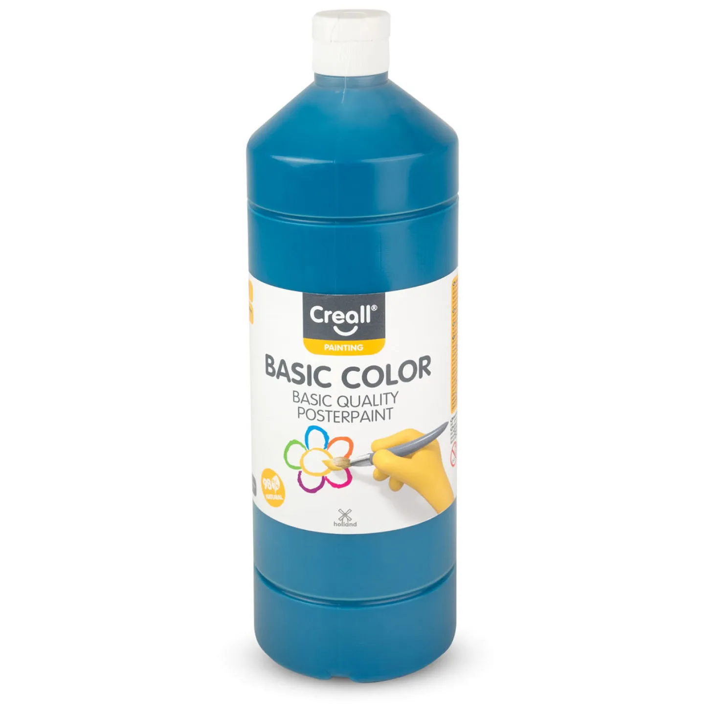 De 1 liter fles turquoisekleurige Creall Schoolverf is ideaal om te gebruiken voor klassen en andere grote groepen.