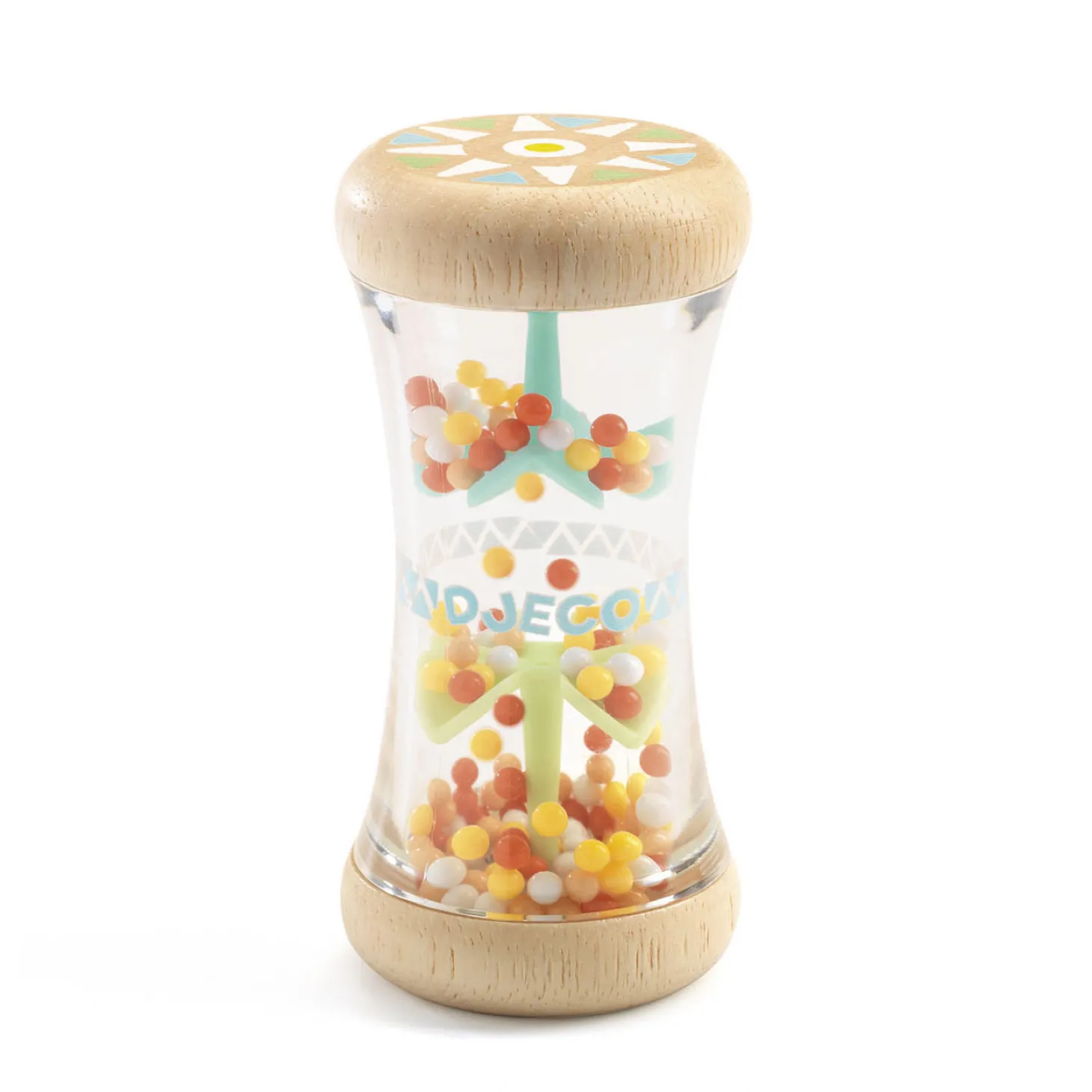 Deze pastelkleurige rammelaar van Djeco is leuk voor kleintjes door het zachte gerammel van de balletjes. De rammelaar is gemaakt van hout en kunststof. Geschikt vanaf 3 maanden.