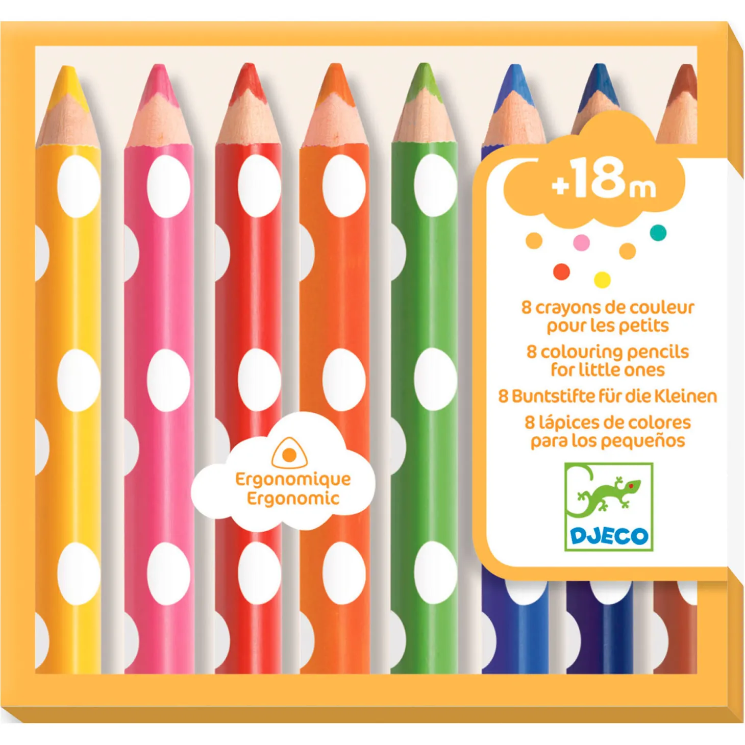 Deze 8 kleurpotloden van DJECO zijn driehoekig, kort en dik zodat kleine handjes ze makkelijk kunnen vasthouden. Speciaal ontworpen voor jonge kinderen, die nog van alles in hun mond stoppen. Volkomen veilig dus!
