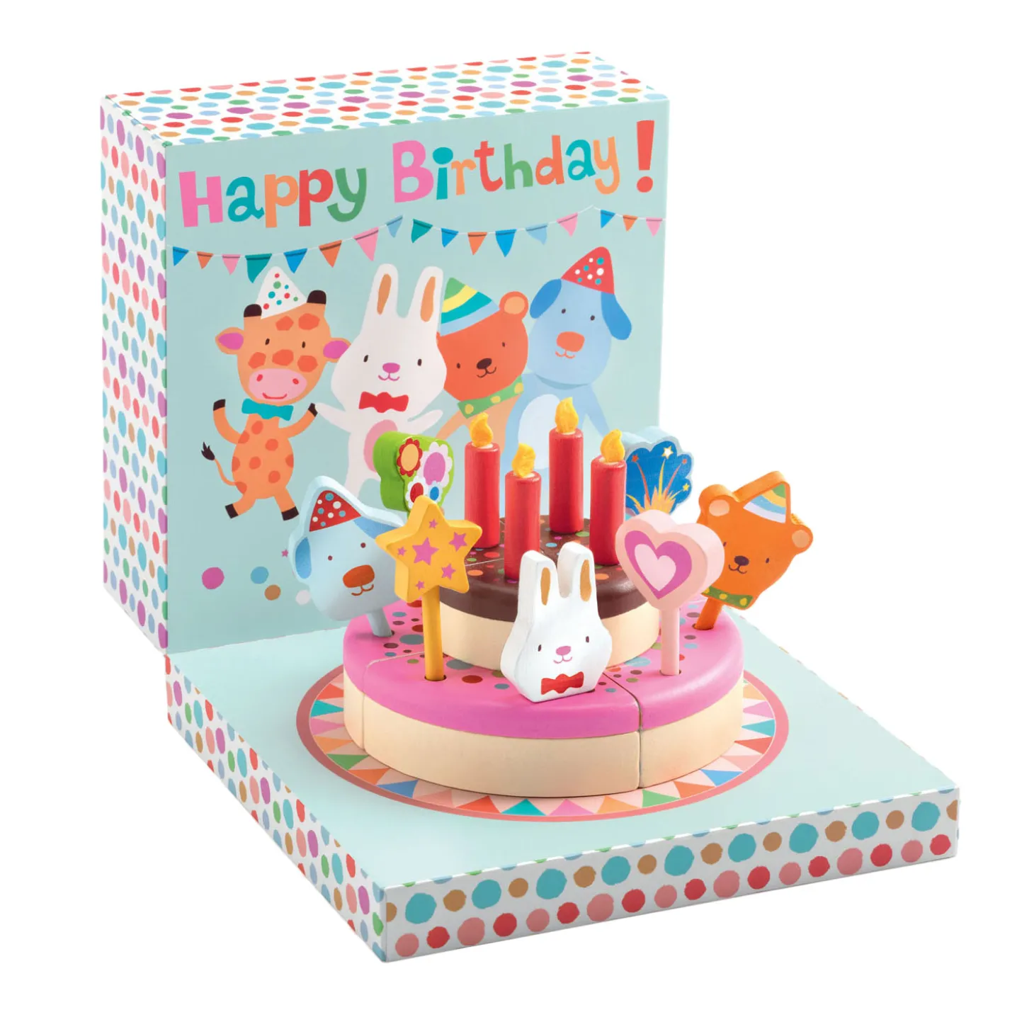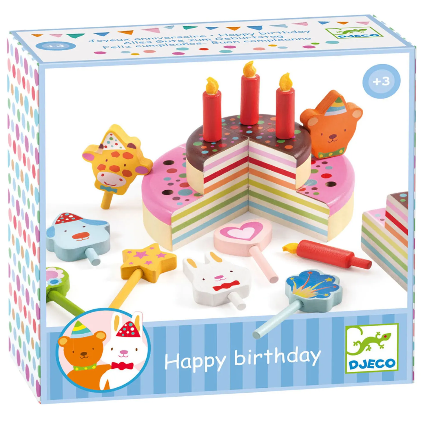 Geschikt voor kinderen vanaf 3 jaar. De taart bevat 4 taartpunten, 4 kaarsjes en verschillende accessoires.