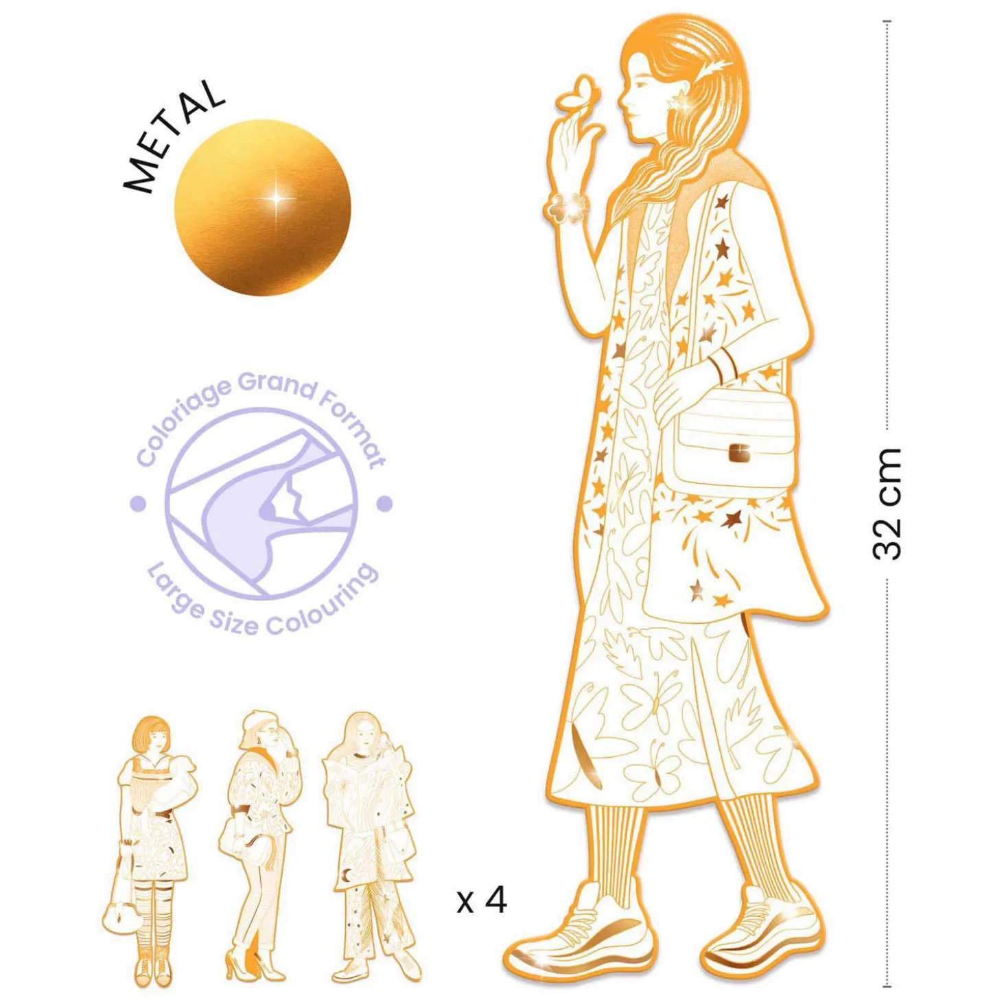 Inhoud: 4 silhouetkleurplaten van karton met metallic randen.