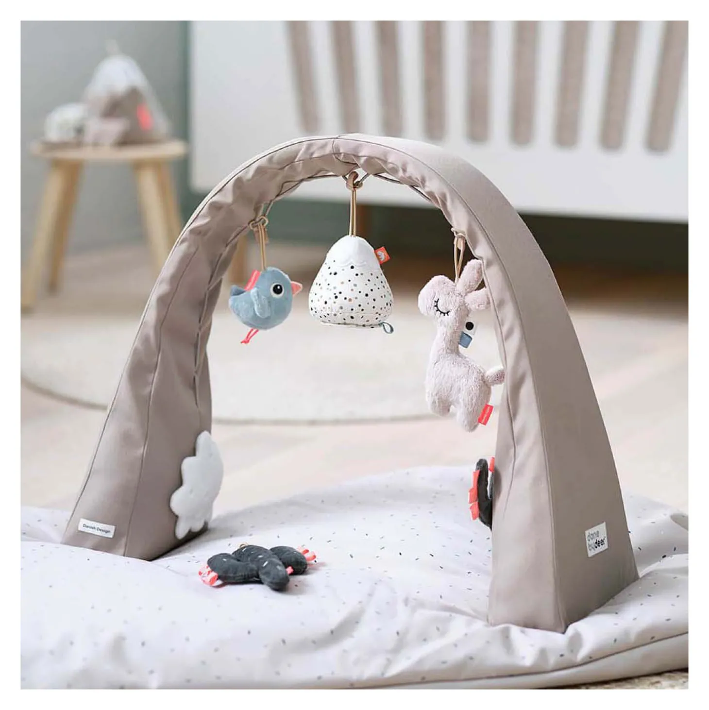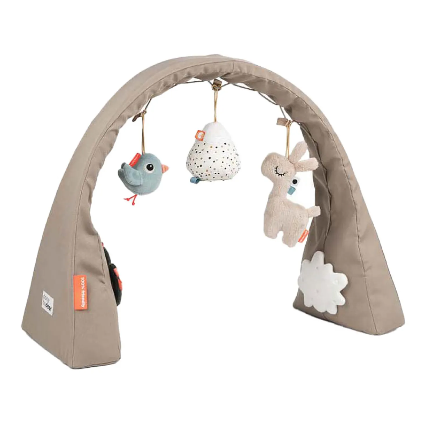 De praktische baby-activiteitengym met de lieve lama is in zachte tinten zand, blauw en groen. De activiteitengym wordt geleverd in een geschenkdoos, wat het een perfect cadeau-idee maakt.