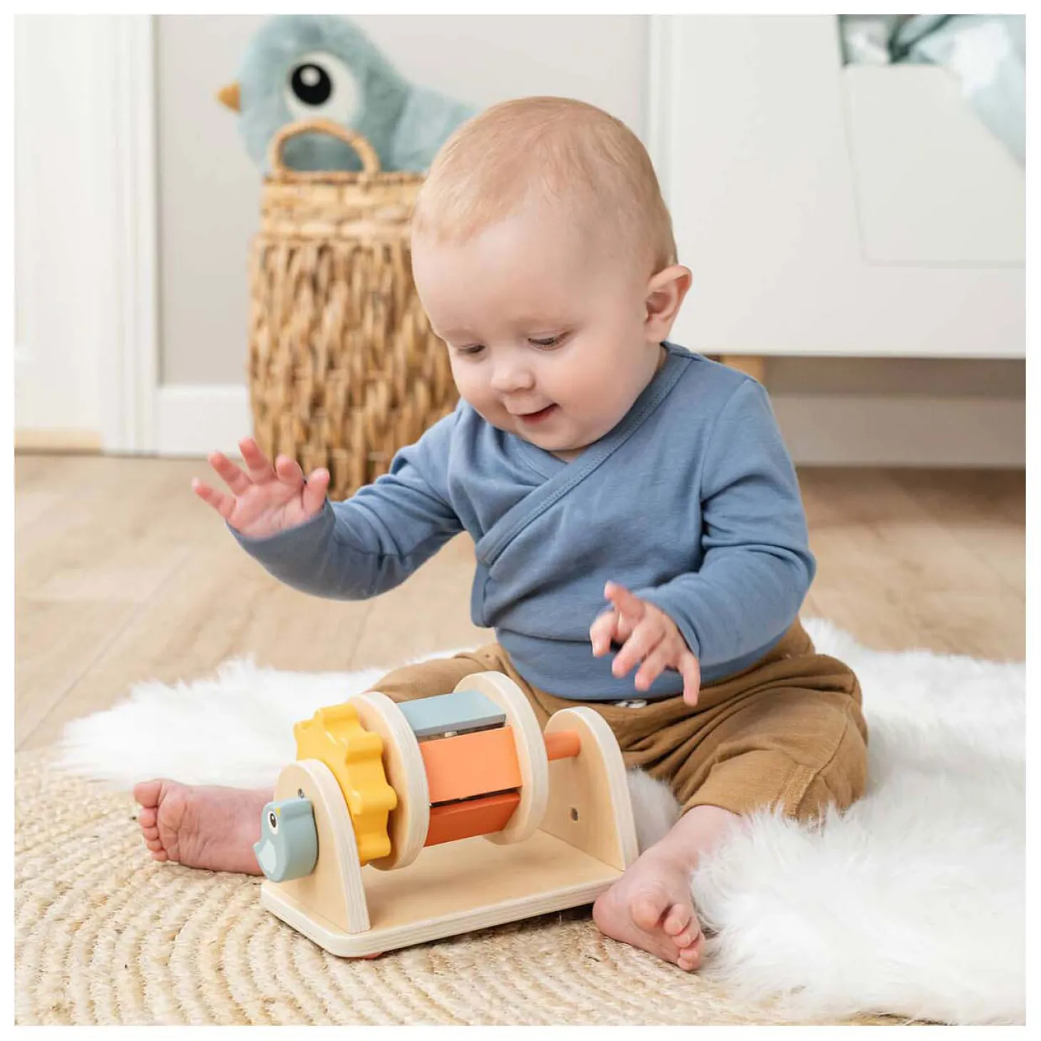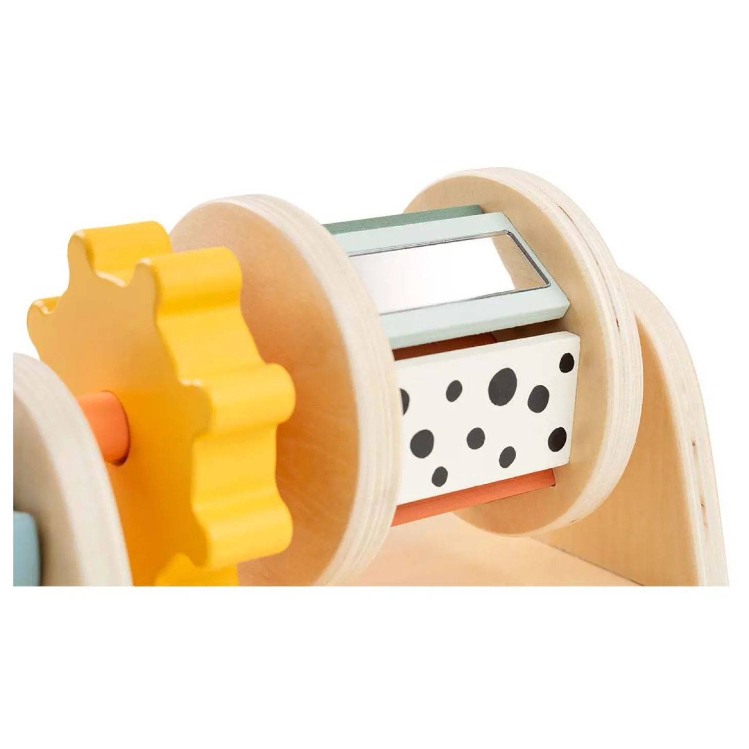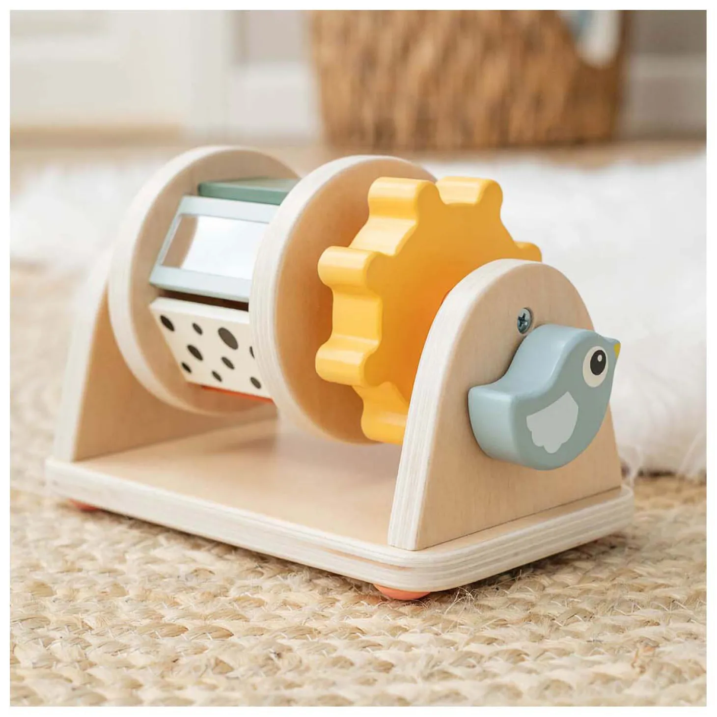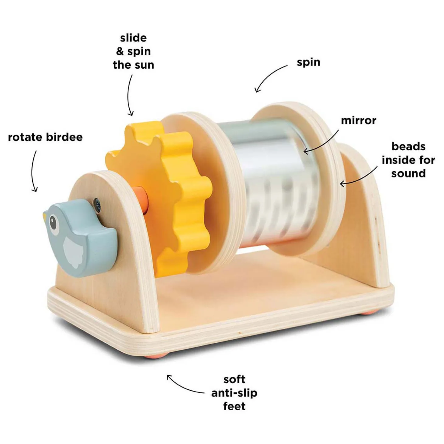 Antislipvoetjes voor stabiliteit en gemaakt van verantwoord hout, geverfd met veilige verf op waterbasis: deze spinner zorgt voor veiligheid tijdens het spelen!