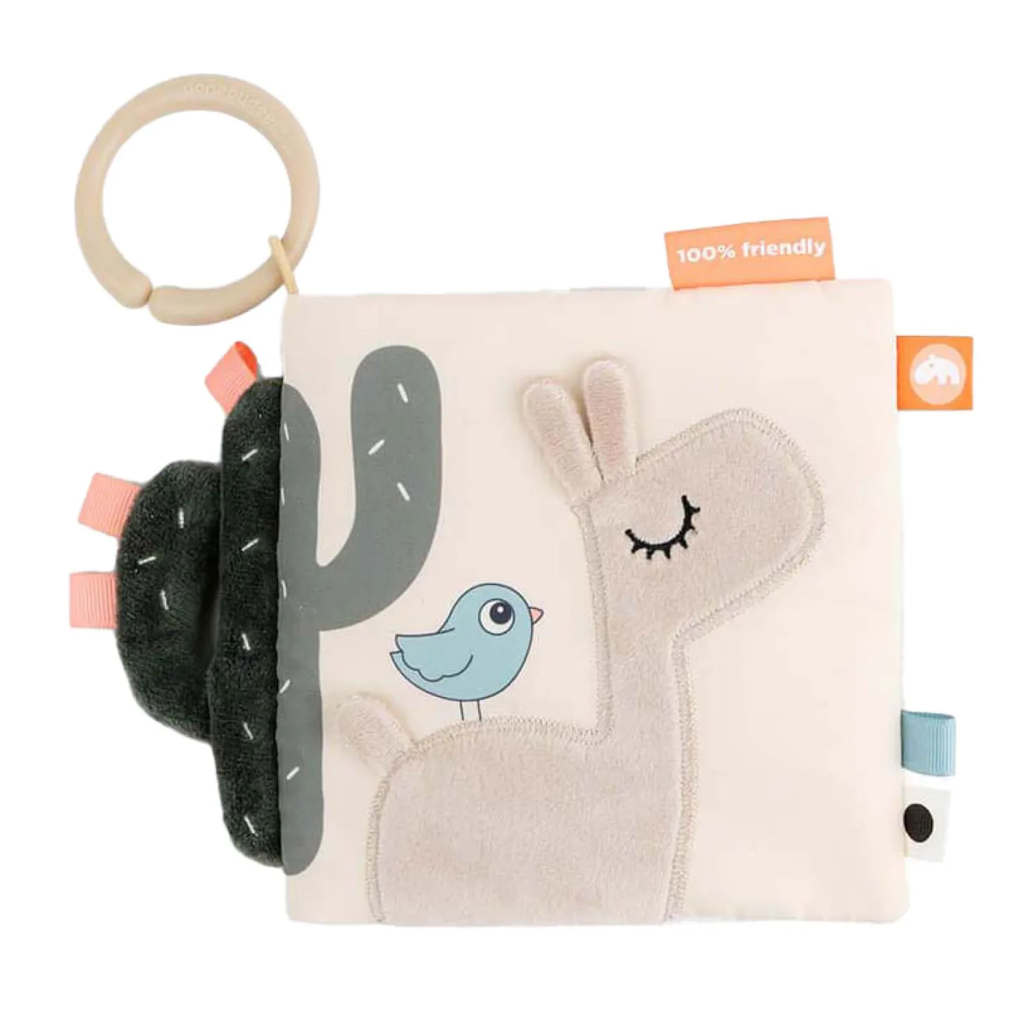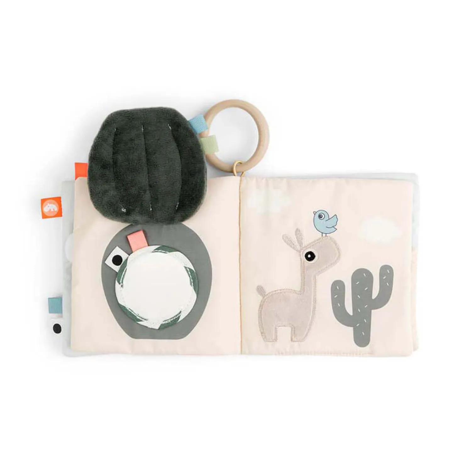Kalme, zanderige kleuren worden gecombineerd met stoffig cactusgroen en een vleugje fris koraalrood. Gebruik de speelgoedlink om het babyboek te bevestigen aan een speelmat voor op de buik of aan een kinderwagen, kinderwagen of autostoel voor entertainment.