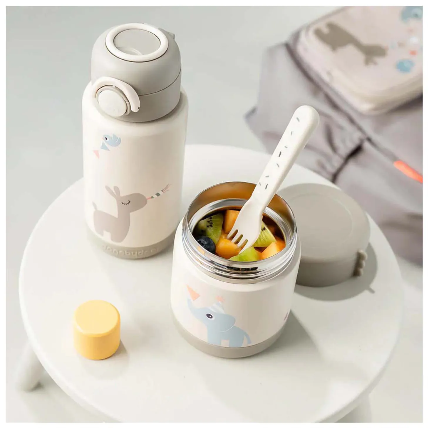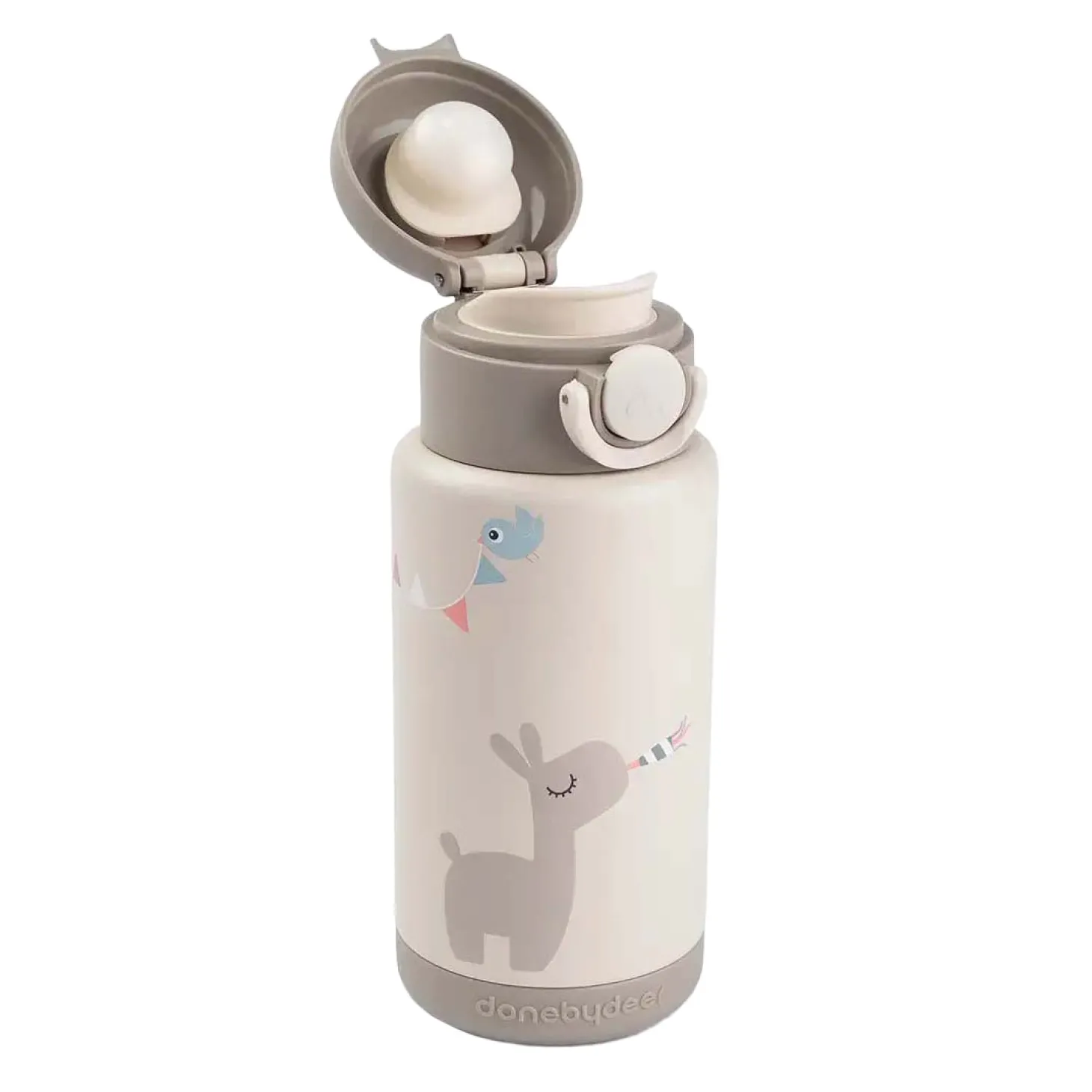 Deze fles in zachte zandkleur is tot leven gebracht door onze vrolijke Deer-vriendjes Birdee, Elphee en Lalee – klaar om van dagelijkse hydratatie een speels moment te maken.