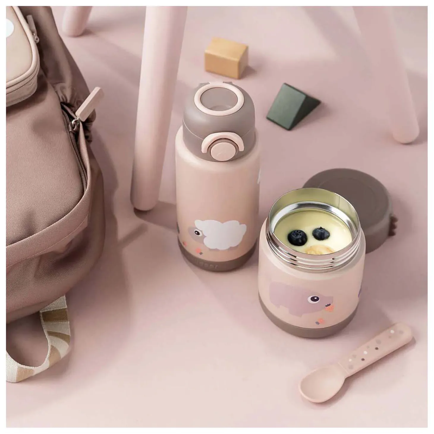 De pot heeft een zachte poedertint en is extra zoet door de vrolijke Pigee en het knuffelige Sheepy – perfecte metgezellen voor kleine pauzes.