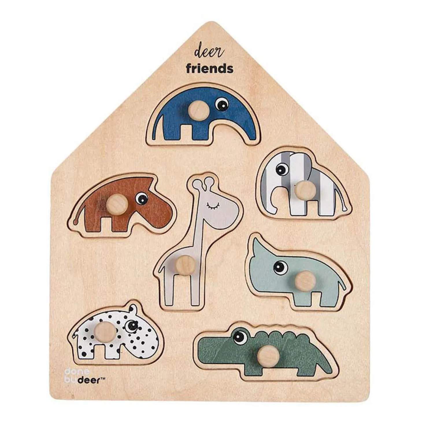 Kleine vingertjes kunnen de puzzelstukjes vastpakken en de Deer-vrienden helpen hun weg terug naar hun plek te vinden.