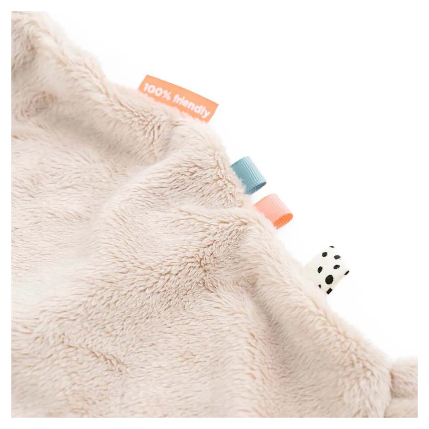 De baby comfortdeken zit vol met leuke labels en spannende texturen die klaar zijn om ontdekt te worden. De praktische klittenbandsluiting houdt fopspenen bij de hand.